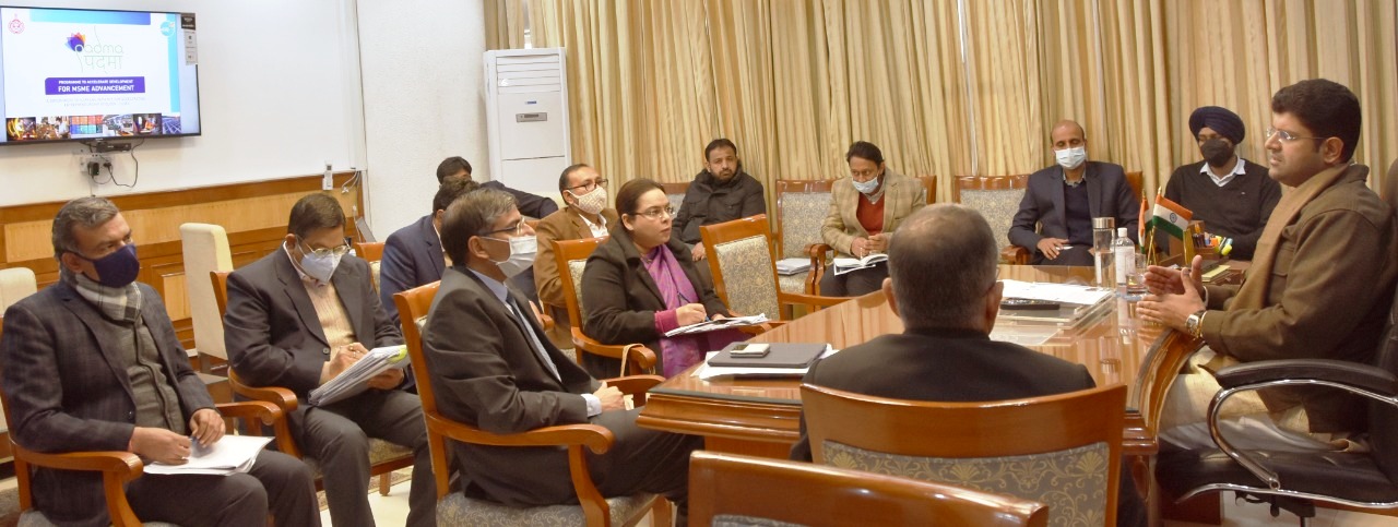 चंडीगढ़। हरियाणा में ‘पदमा’ स्कीम के लिए ऐसी ‘लैंड-पूल पॉलिसी’ बनाई जाए जिससे कि जमीन के मालिक ग्रामीण लोगों को अधिक से अधिक फायदा हो और गांव में रोजगार के अवसर बढें। यह निर्देश आज हरियाणा के उपमुख्यमंत्री दुष्यंत चौटाला ने ‘पदमा’ स्कीम से संबंधित अधिकारियों की बैठक की अध्यक्षता करते हुए दिए। डिप्टी सीएम ने बैठक के बाद जानकारी दी कि केंद्र की ‘पदमा’ स्कीम को आगे बढ़ाते हुए हरियाणा सरकार इस पर तेजी से काम करने जा रही है। उन्होंने बताया कि प्रदेश में एमएसएमई को बढ़ावा देने के लिए लैंड पूलिंग के तहत प्रत्येक ब्लॉक में करीब 50 एकड़ जमीन जुटाई जाएगी।