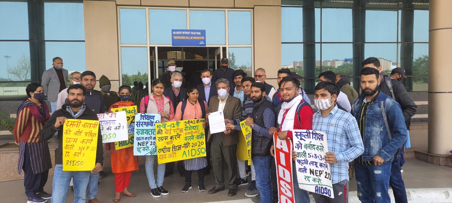 रोहतक। छात्र संगठन ऑल इंडिया डेमोक्रेटिक स्टूडेंट्स ऑर्गेनाइजेशन (एआईडीएसओ) ने राष्ट्रीय शिक्षा नीति 2020 को रद्द करने की मांग के लिये उपकुलपति, एमडीयू,रोहतक के माध्यम से माननीय राज्यपाल, हरियाणा को ज्ञापन सौंपा। एमडीयू एक्टिविटी सेंटर से उपकुलपति आफिस तक जुलूस निकालकर प्रदर्शन किया।