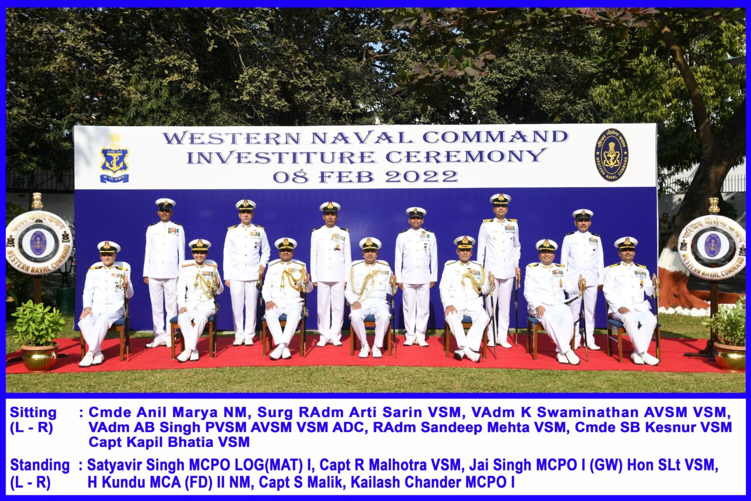 दिल्ली। पश्चिमी नौसेना कमान के लिये नौसेना अंलकरण समारोह-2022 का आयोजन आठ फरवरी, 2022 को मुम्बई में किया गया। वाइस एडमिरल अजेन्द्र बहादुर सिंह, पीवीएसएम, एवीएसएम, वीसीएम, एडीसी, पश्चिमी नौसेना कमान के फ्लैग ऑफीसर कमांडिंग-इन-चीफ ने स्वतंत्रता दिवस 2020 और गणतंत्र दिवस 2021 पर घोषित शौर्य तथा विशिष्ट सेवा पदक नौसेना कर्मियों को प्रदान किये।