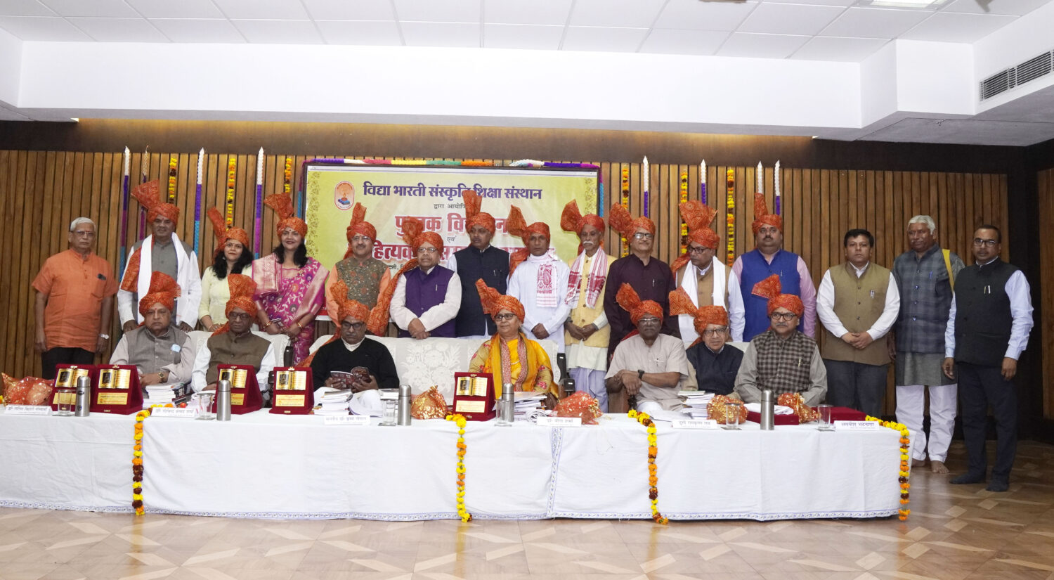 कुरुक्षेत्र। विद्या भारती संस्कृति शिक्षा संस्थान द्वारा पुस्तक विमोचन एवं साहित्यकार सम्मान समारोह का आयोजन किया गया, जिसमें 21 पुस्तकों का विमोचन किया गया। कार्यक्रम में पुस्तकों के लेखकों को ‘संस्कृति भवन-साहित्य सेवा सम्मान’ से सम्मानित किया गया। इस अवसर पर मुख्यातिथि राष्ट्रीय स्वयंसेवक संघ के सह सरकार्यवाह डॉ. कृष्ण गोपाल थे। कार्यक्रम में मुख्य अतिथि राष्ट्रीय पुस्तक न्यास, नई दिल्ली के अध्यक्ष डॉ. गोविन्द प्रसाद शर्मा थे। अध्यक्षता केन्द्रीय हिन्दी संस्थान आगरा की निदेशक डॉ. बीना शर्मा ने की। वि.भा.सं.शिक्षा संस्थान के अध्यक्ष डॉ. ललित बिहारी गोस्वामी, वि.भा.अ.भा. शिक्षा संस्थान के अध्यक्ष दुसी रामकृष्ण राव एवं संस्थान के सचिव अवनीश भटनागर भी मंचासीन रहे। उन्होंने विमोचनार्थ पुस्तकों का संक्षिप्त परिचय कराया। कार्यक्रम का संचालन संस्थान के निदेशक डॉ. रामेन्द्र सिंह ने किया। सं.बोध परियोजना के संयोजक दुर्ग सिंह राजपुरोहित ने अतिथि परिचय कराया।