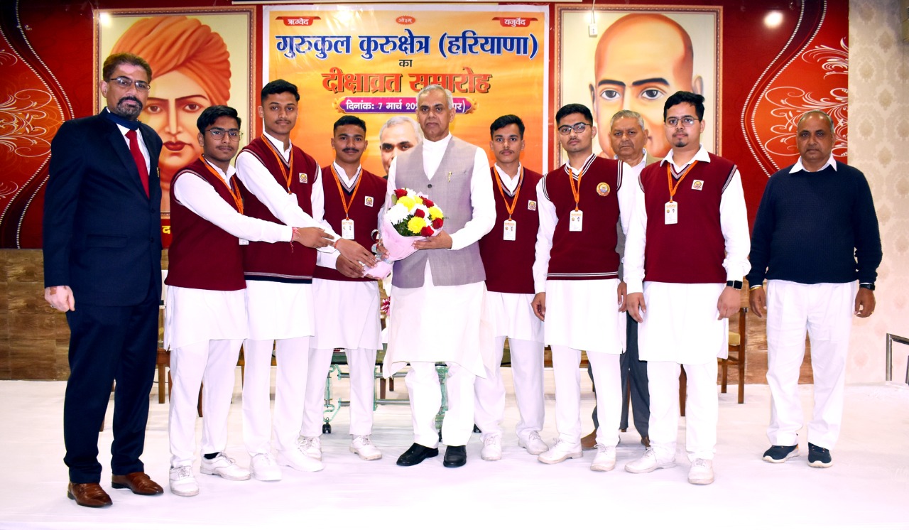 उन्होंने सभी छात्रों को उज्ज्वल भविष्य के लिए शुभकामनाएं दीं। निदेशक व प्राचार्य कर्नल अरुण दत्ता ने समारोह में मुख्य अतिथि आचार्य श्री देवव्रत का स्वागत करते हुए कहा कि यह छात्रों के साथ हमारा भी परम सौभाग्य है कि दीक्षा व्रत समारोह में हमें आचार्य देवव्रत का आशीर्वाद, उनका मार्गदर्शन मिल रहा है। उन्होंने कहा कि यह आचार्यश्री की 35 सालों की कठिन तपस्या और त्याग का ही परिणाम है कि आज गुरुकुल कुरुक्षेत्र हरियाणा का नंबर वन आवासीय विद्यालय है। उनके ओजस्वी मार्गदर्शन में यहां के छात्र सफलता की नई इबारत लिख रहे हैं। गुरुकुलीय शिक्षा पद्धति को आधुनिक शिक्षा के साथ जोडक़र गुरुकुल कुरुक्षेत्र को आकाश की ऊंचाइयों पर पहुंचाने वाले आचार्य देव्रवत महान् शिक्षाविद् तो हैं ही साथ ही कुशल प्रशासक, उच्च कोटि के वक्ता और हम सबके प्रेरणास्रोत हैं। कर्नल दत्ता ने समारोह में पहुंचने पर आचार्य श्री देवव्रत का आभार भी व्यक्त किया। इस अवसर पर गुरुकुल के प्रधान कुलवन्त सिंह सैनी, निदेशक-प्राचार्य कर्नल अरुण दत्ता, सह प्राचार्य शमशेर सिंह, मुख्य संरक्षक संजीव आर्य सहित अध्यापकगण उपस्थित रहे। मंच संचालन दिनेश राणा द्वारा किया गया।