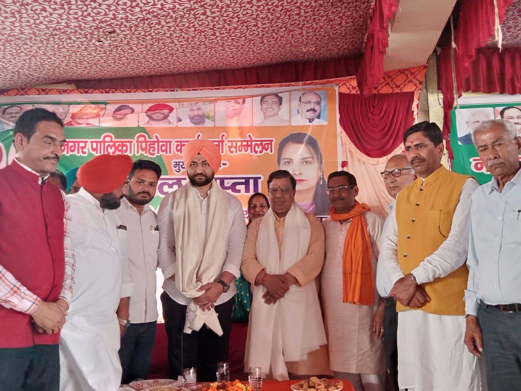 हरियाणा के शहरी निकाय मंत्री डा. कमल गुप्ता और हरियाणा के खेल एवं युवा मामले मंत्री संदीप सिंह ने रविवार को सबसे पहले पिहोवा के प्रवेश द्वार सरस्वती गेट पर राकेश पुरोहित, आशीष चक्रपाणि, अक्षय नंदा, रामकिशन दुआ व रमेश वर्मा द्वारा आयोजित सामूहिक कार्यक्रम में शिरकत की है। यहां पर मंत्रोच्चारण, शंखनाद की ध्वनि और भारतमाता के जयघोष के साथ नगरपालिका चुनावों का बिगुल बजाया। इसके बाद अग्रवाल धर्मशाला में गीता डावर, विस्तारक नरेंद्र डावर व रामकिशन दुआ, गुरुद्वारा सिंह सभा में प्रिंस परूथी, रमेश राज वर्मा, जोगिंद्र सिंह बेदी, नंद कालोनी न. 2 में फूल सिंह, मनमोहन चक्रपाणि, रामधारी शर्मा, विनित गोयल, वाल्मिकी बस्ती धर्मशाला में विक्की बिडलान, शेर सिंह, विकास लोहट, रामलीला भवन में कुलदीप छत्तरीवाला, सतीश कठानिया, शमशेर सिंह, मक्कड़ सैनी, केशव विहार नगली वाली कुटिया, मॉडल टाऊन पार्किंग में नवीन गर्ग, प्रिंस गर्ग, सरस्वती चौंक पर भाजपा के वरिष्ठ नेता एवं ब्राह्मण पंचायत पिहोवा के प्रधान विक्रम चक्रपाणि, हानु चक्रपाणि, मनोज चक्रपाणि, शाश्वत चक्रपाणि, गौरव चक्रपाणि व समस्त ब्राह्मण समाज पिहोवा व पवन मार्किट पिहोवा की तरफ से आयोजित भव्य कार्यक्रमों में शिरकत की।