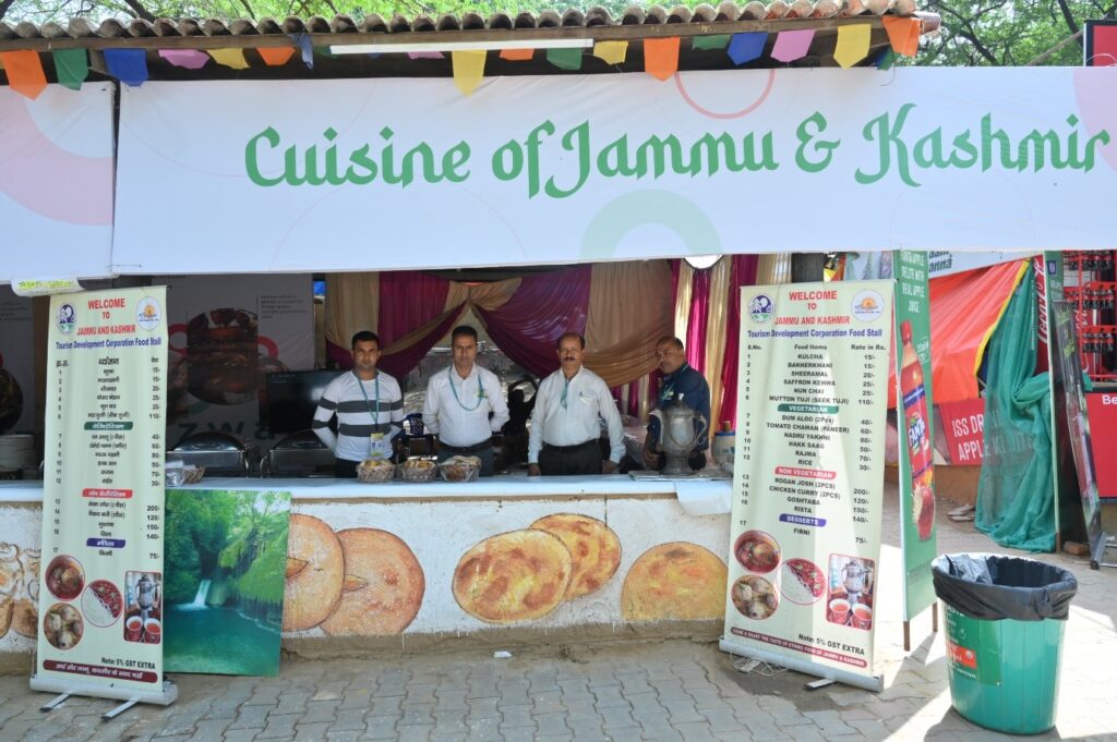 फूड कोर्ट भी मेले का केंद्र स्थल है। एक बार खरीदारी की होड़ हो जाने के बाद आगंतुक फूड कोर्ट के लिए लंबे समय तक चलते हैं। थीम स्टेट यानी जम्मू और कश्मीर में एक विशेष फूड स्टॉल है जहां वे पारंपरिक कश्मीरी व्यंजनों के साथ मेले के भोजन का इलाज कर रहे हैं। एक बार मांसाहारी और शाकाहारी दोनों तरह के व्यंजनों का आनंद ले सकते हैं। एक बार रोगन जोश, चिकन करी, टमाटर चमन, दम आलू, शीरमाल, बेकरखानी और क्या नहीं में से चुन सकते हैं। यहां की हर चीज खाने-पीने के शौकीनों को खूब पसंद आ रही है।