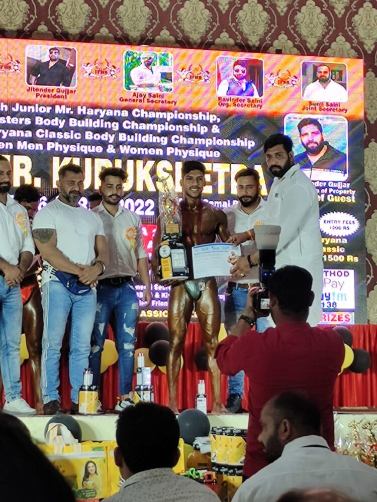 जूनियर हरियाणा में भिवानी के अमित जोगी ने ओवरऑल का टाइटल अपने नाम किया ओपन हरियाणा बॉडी बिल्डिंग में सहारनपुर के वरुण ने ओवरऑल टाइटल अपने नाम किया। जनरल सेक्रेटरी अजय सैनी ने बताया कि कुरुक्षेत्र में पहली बार women physique का कंपीशन कराया गया। वहीं यमुनानगर की पारुल ने पहला और कुरूक्षेत के रॉक हार्ड जिम की स्टूडेंट ने दूसरा स्थान प्राप्त किया। इस बॉडीबबिल्डिंग प्रतियोगिता में रणधीर सिंह गुज्जर ( किसान ग्रुप ऑफ प्रॉपर्टी)ने चीफ गेस्ट के रूप में शिरकत की।