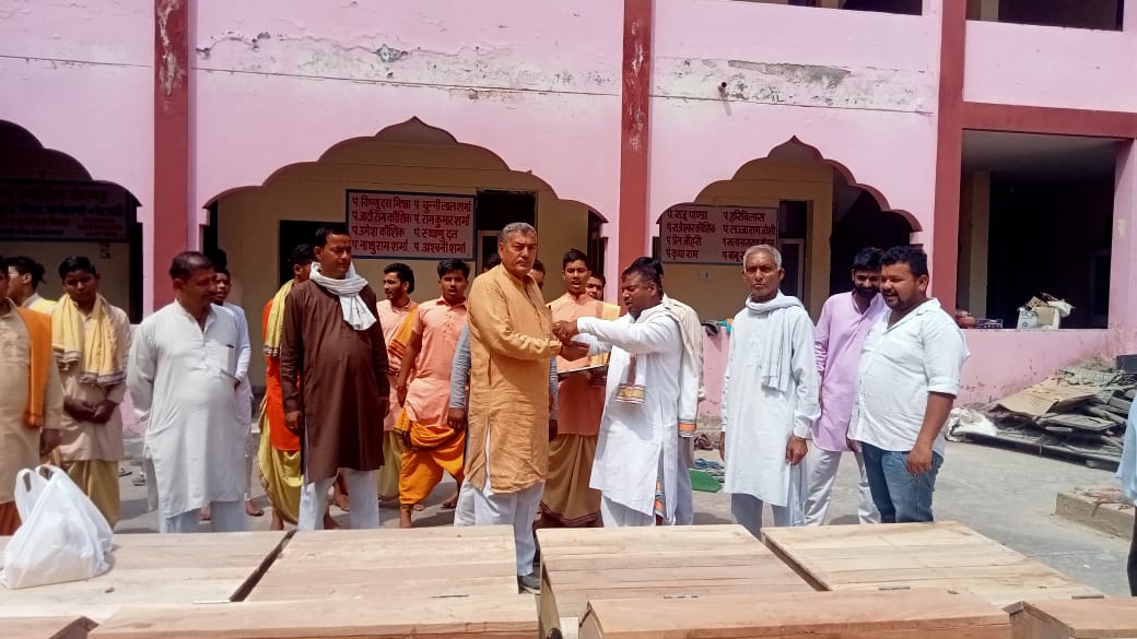 कुरुक्षेत्र। श्री ब्राह्मण एवं तीर्थोद्धार सभा द्वारा सन्निहित सरोवर पर कर्मकांड करवाने वाले तीर्थ पुरोहितों को 11 तख्त भेंट किए गए हैं। तीर्थ पुरोहित सदन में आयोजित इस कार्यक्रम में सभा के मुख्य सलाहकार जयनारायण शर्मा ने कहा कि जो धर्म की रक्षा करता है, धर्म उसकी रक्षा करता है। तीर्थ पुरोहितों से ही तीर्थ की शोभा है। तीर्थ पुरोहित सनातन परंपरा का ध्वज उठाए हुए हैं और इन चीजों के कारण भारत की सनातन परंपरा जिंदा है। उन्होंने कहा कि कर्मकांड करवाने वाले 11 तीर्थ पुरोहितों को बैठने के लिए तख्त दिए गए हैं। भविष्य में भी जिस किसी को भी तख्त की आवश्यकता होगी उसे भी सभा की ओर से तख्त भेंट किया जाएगा। उन्होने बताया कि ब्रह्मसरोवर पर भी तीर्थ पुरोहितों को सभा की ओर से पूजा अर्चना व कर्मकांड करवाने के लिए तख्त उपलब्ध करवाए हुए हैं।