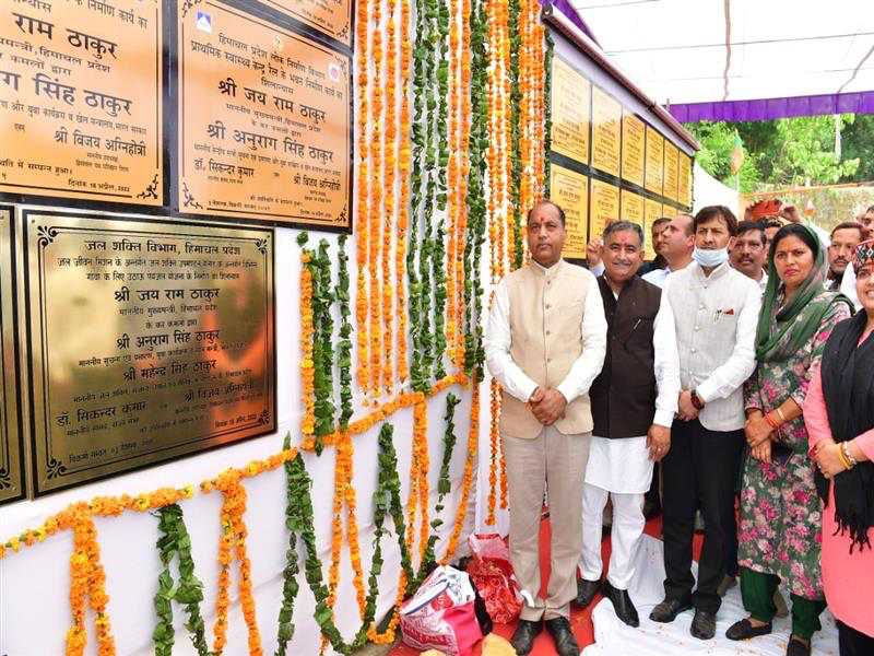 जय राम ठाकुर ने नादौन विधानसभा क्षेत्र में हर घर नल से जल योजना के अन्तर्गत 3.80 करोड़ रुपये लागत की उठाऊ जलापूर्ति योजना साई मटवार, हर घर नल से जल योजना के अन्तर्गत 3.04 करोड़ रुपये लागत की उठाऊ जलापूर्ति योजना कोहला कलूर, चोआ चकराला, हर घर नल से जल योजना के अन्तर्गत 1 करोड़ रुपये की लागत की उठाऊ जलापूर्ति योजना टिल्लू जलाड़ी तथा घरढ़ू रक्कड़ जटटा, के बस्तियों के लिए 2.05 करोड़ रुपये लागत की उठाऊ जलापूर्ति योजना, तहसील नादौन में हर घर नल से जल योजना के तहत 43 लाख रुपये की उठाऊ जलापूर्ति योजना मंझला बनहार रंगस, नादौन में 2.26 करोड़ रुपये की लागत से औद्योगिक क्षेत्र रीट में औद्योगिक क्षेत्र के विकास कार्य, 5.20 करोड़ रुपये की लागत से मनपुल मझियार सैरा सड़क परोबार तुतरो बनगाणा सड़क के उन्नयन कार्य, 73 लाख रुपये की लागत से डिग्री कॉलेज नादौन के कैन्टीन ब्लॉक के निर्माण, औद्योगिक क्षेत्र रीट में 4.50 करोड़ रुपये की लागत से ढांचागत विकास कार्य, 3.40 करोड़ रुपये की लागत से निर्मित होने वाले पेयजल आपूर्ति योजना बलेटा, 72 लाख रुपये की लागत से निर्मित होने वाली मंझैली जुलाहबाल्ह, ढोआ दा पंगा जलापूर्ति योजना, 2.13 करोड़ रुपये की लागत से निर्मित होने वाली पेयजल योजना हथोल, 1.13 करोड़ रुपये की लागत से सिंचाई योजना पनसाई के सुदृढ़ीकरण कार्य, 1.26 करोड़ रुपये की लागत से पेयजल योजना जनसूह, 1.12 करोड़ रुपये से सिंचाई योजना करौर का सुदृढ़ीकरण कार्य, 10.11 करोड़ रुपये की लागत से पेयजल योजना अमलैहड़ भवरां बसारल के सुदृढ़ीकरण, 65.21 लाख रुपये की सिंचाई योजना सुकरियाह बिहाड़, 19.30 करोड़ रुपये की पेयजल योजना जोल मनसाई, कश्मीर, टंग, अमलैहड़ भावरियां, 9.30 करोड़ रुपये की लागत से उठाऊ जलापूर्ति योजना गलियान, उतप, सरवीन, सेर वलूनी के सुधार कार्य तथा जल शक्ति विभाग उप मंडल गलोर के अन्तर्गत विभिन्न गांवों के लिए 23.17 करोड़ रुपये की जलापूर्ति योजना का लोकार्पण किया।