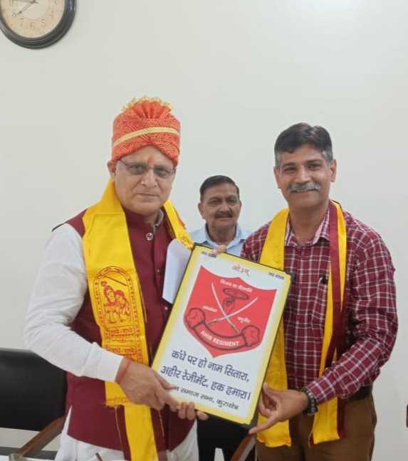 कुरुक्षेत्र। भारतीय सेना में अहीर रेजिमेंट के गठन की मांग को लेकर संघर्ष के शंखनाद को आज शिक्षा मंत्री कंवरपाल ने अपना समर्थन देते हुए इस सम्बंध में अपनी सिफारिश सरकार को भेजने का आश्वासन यादव समाज को दिया। यादव समाज सभा कुरुक्षेत्र के अध्यक्ष तथा संयुक्त अहीर रेजिमेंट ट्रस्ट के उत्तरी हरियाणा प्रभारी डॉ अतुल यादव की अध्यक्षता में एक प्रतिनिधिमंडल ने स्थानीय जयराम महिला महाविद्यालय में शिक्षा मंत्री से मुलाकात कर ज्ञापन सौंपा। प्रतिनिधिमंडल  को संबोधित करते हुए शिक्षा मंत्री कंवरपाल सिंह ने कहा कि भारतीय सेना में फिलहाल 23 रेजिमेंट हैं जो विभिन्न जातियों और क्षेत्र के नाम पर हैं।भारतीय सेना में अहीरों की नफरी उनकी जनसंख्या के अनुसार सबसे अधिक है।