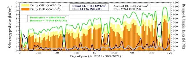 वर्तमान अध्ययन के निष्कर्ष से देश स्तर पर ऊर्जा प्रबंधन और योजना पर जंगल की आग के प्रभाव के बारे में निर्णय लेने वालों के बीच काफी जागरूकता बढ़ेगी। इसके अलावा, यह शोध जलवायु परिवर्तन की गंभीरता को कम करने की प्रक्रियाओं और नीतियों एवं सतत विकास पर इसके प्रत्यक्ष और अप्रत्यक्ष प्रभावों का समर्थन कर सकता है।जनवरी से अप्रैल 2021 के दौरान उत्पादित सौर ऊर्जा पर एरोसोल, धूल और बादल के प्रभावों का वित्तीय विश्लेषण। प्रभाव को दैनिक औसत और कुल ऊर्जा हानि, वित्तीय नुकसान और सौर ऊर्जा क्षमता के संदर्भ में निर्धारित किया गया था।