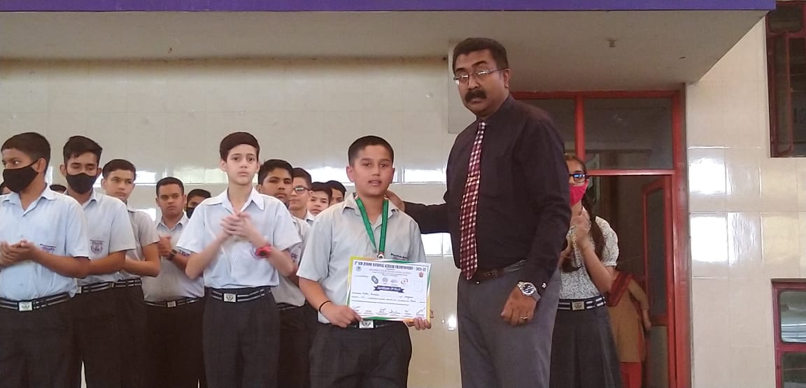रोहतक। इंडस पब्लिक स्कूल, रोहतक के छात्र माहिर पावड़िया ने गत दिनों आयोजित झारखंड (धनबाद) में आयोजित कुराश प्रतियोगिता में कांस्य पदक जीतकर विद्यालय व माता-पिता का नाम रोशन किया है। विद्यालय की चेयरपर्सन डॉ. एकता सिंधु व डायरेक्टर प्रिंसिपल श्री इंद्रनील गुप्ता ने विद्यार्थी व उसके माता-पिता को शुभकामनाएं देकर आगे बढ़ने के लिए प्रेरित किया।