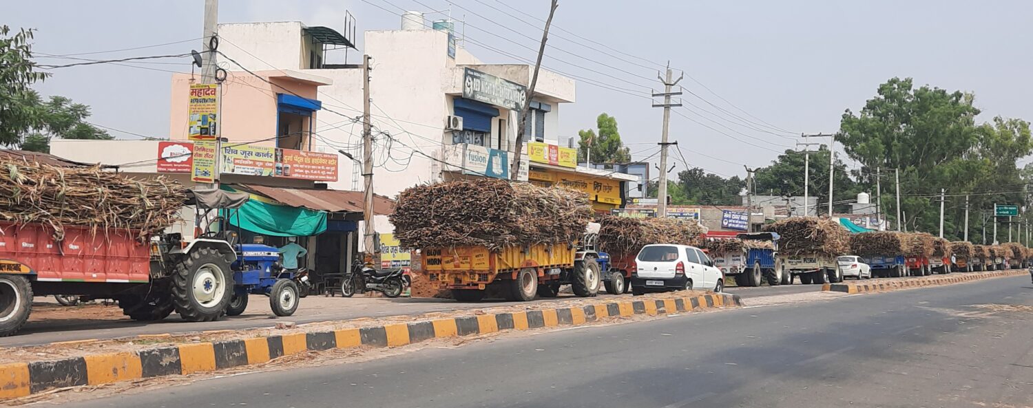 शाहाबाद। स्थानीय सहकारी चीनी मिल का पिराई सत्र अंतिम चरण में होने के कारण भारी संख्या में किसानों ने गन्ने से भरी ट्रालियां मिल में पहुंचा दी। कुछ घंटों के लिए मिल में ब्रेकडाउन चलने के कारण जाम लग गया और हालात यह हो गए कि लाडवा रोड पर भारी संख्या में ट्रालियां सड़क पर ही खड़ी हो गई। जिससे जाम की स्थिति बन गई। लाडवा रोड की एक और का ट्रैफिक तो बिल्कुल ही बंद हो गया। जिस पर मिल प्रशासन ने त्वरित कार्रवाई करते हुए गन्ने की ट्रालियां को अनाज मंडी में भेजना शुरू कर दिया। लगातार दूसरे दिन सैकड़ों की संख्या में ट्रालियां नई अनाज मंडी में खड़ी थी। किसानों में यह बात जोर पकड़ गई थी कि मिल बंद होने वाला है जिस कारण आनन-फानन में सभी किसान ट्रालियां लेकर मिल में पहुंचने लगे। सड़क पर भारी संख्या में ट्रॉलियां खड़ी होने से दुर्घटना का सबब भी बन सकती हैं।