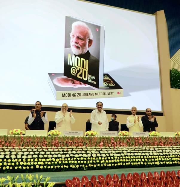दिल्ली।उपराष्ट्रपति एम. वेंकैया नायडु ने आज नई दिल्ली में ‘मोदी @20: ड्रीम्स मीट डिलीवरी’ पुस्तक का विमोचन किया। इस अवसर पर केंद्रीय गृह एवं सहकारिता मंत्री अमित शाह और विदेश मंत्री डॉ एस जयशंकर समेत कई गणमान्य व्यक्ति मौजूद थे। यह पुस्तक प्रधानमंत्री नरेन्द्र मोदी के गवर्नेंस में 20 साल पर अनेक प्रख्यात बुद्धिजीवियों और विशिष्ट व्यक्तियों द्वारा लिखे गए अध्यायों का संकलन है। गृह एवं सहकारिता मंत्री अमित शाह ने भी इस पुस्तक में एक अध्याय लिखा है।