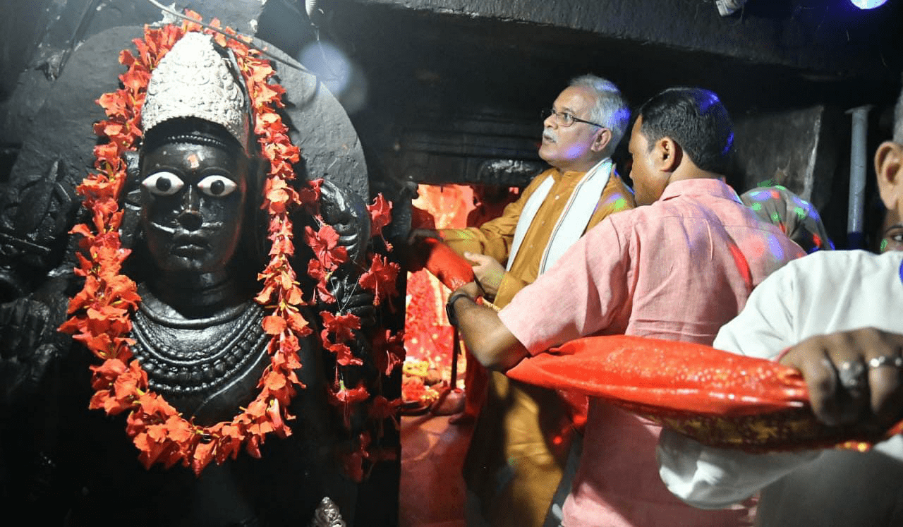 मुख्यमंत्री ने इस अवसर पर मंदिर में पूजा अर्चना की और प्रदेश की खुशहाली की कामना की। इस मौके पर मुख्यमंत्री ने मंदिर परिसर में मावली माता और भैरव जी के दर्शन भी किये। इस दौरान मंदिर परिसर में पारंपरिक वाद्ययंत्रों की सुमधुर ध्वनि से पूरा वातावरण आध्यात्मिक रंग में रंग गया था। जिला प्रशासन के अधिकारियों ने बताया कि डेनेक्स की महिलाओं ने जो चुनरी बनाई है उससे उनके हुनर को पूरे देश में जगह मिलेगी और इससे उनके काम की ख्याति दुनिया भर में  फैलेगी। मुख्यमंत्री ने इस अवसर पर मंदिर के पुजारियों से भी संवाद किया। उन्होंने कहा कि हम प्रदेशवासी बहुत सौभाग्यशाली हैं कि हमें माईं दंतेश्वरी का निरंतर आशीर्वाद और उनकी छत्रछाया मिल रही है।