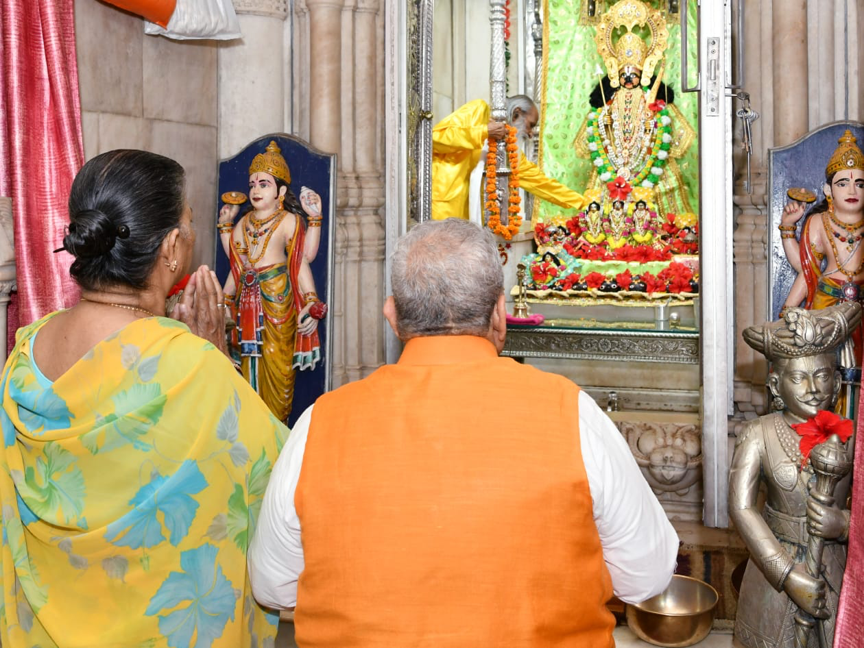 जयपुर। राज्यपाल कलराज मिश्र ने गुरुवार प्रातः माउंट आबू में नक्की झील के किनारे सर्वेश्वर श्री रघुनाथ जी मंदिर में दर्शन किए। राज्यपाल ने राज्य की प्रथम महिला सत्यवती मिश्र एवं परिवारजनों के साथ मन्दिर में पूजा-अर्चना कर देश और प्रदेशवासियों की सुख-समृद्धि और खुशहाली के लिए प्रार्थना की। इस अवसर पर मिश्र ने मंदिर महन्त श्री सियारामदास जी महाराज नैयायिक से धर्म और अध्यात्म पर संवाद भी किया। इससे पहले राज्यपाल का उपरना एवं श्रीफल भेंट कर स्वागत किया गया।