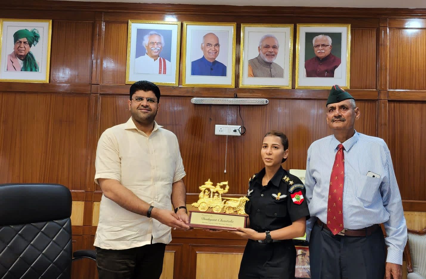 चंडीगढ़। हरियाणा के उपमुख्यमंत्री दुष्यंत चौटाला ने कहा कि हरियाणा को अपनी बेटियों पर नाज है और राज्य की होनहार बेटियां खेल व पढ़ाई के साथ-साथ सेना में भी शामिल होकर प्रदेश को गौरवान्वित कर रही हैं। यह बात डिप्टी सीएम ने मंगलवार उनसे कार्यालय में मिलने आई लड़ाकू हेलीकॉप्टर की पायलट अभिलाषा बड़क से अनौपचारिक बातचीत में कही। अभिलाषा बड़क हरियाणा के रोहतक जिला के गांव बालंद की रहने वाली हैं। वे लड़ाकू हेलीकॉप्टर की देश की पहली महिला पायलट हैं।