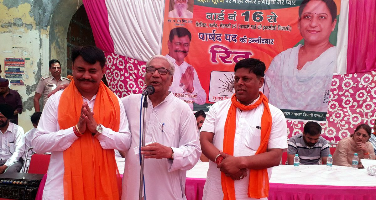 वहीं कृष्ण बेदी ने नगरपालिका प्रधान पद के उम्मीदवार तिलकराज अग्रवाल के पक्ष में मतदान करने की भी अपील की। उन्होंने कहा कि तिलकराज अग्रवाल भी पिछले 12 वर्षों से लगातार नि:स्वार्थ भाव से लोगों की सेवा कर रहे हैं और जनता द्वारा मौका दिया जाने पर वह नि:स्वार्थ भाव से ही नगरपालिका में बैठकर जनता की सेवा करेंगे। इससे पहले कर्णराज सिंह तूर, सुखवंत सिंह बग्गी, प्रदीप शर्मा ने भी रितु शर्मा को वोट करने की अपील की। इस मौके पर सुखदेव सिंह बाजवा, सुरजीत सिंह, रवि शर्मा, सतपाल तलवाड़, साहब सिंह नम्बरदार, काका वर्मा, प्रमोद शर्मा, ज्ञानचंद कालड़ा, अनिल वर्मा, लोकेश मल्होत्रा, गुरदीप सिंह भुल्लर, विजय सचदेवा, दिनेश सचदेवा, सुरेश शर्मा, सतनाम सिंह, राजबीर चौधरी, अंकुश सिंगला, योगराज शर्मा सहित बड़ी संख्या में वार्डवासी मौजूद थे।