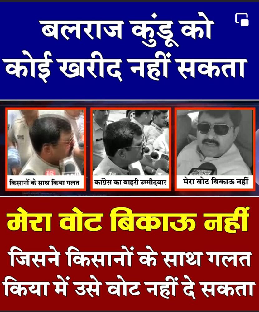 महम।जन सेवक मंच संयोजक एवं महम से आजाद विधायक बलराज कुंडू ने राज्यसभा चुनाव में आज किसी भी प्रत्याशी को वोट नही करने का निर्णय लिया और कहा कि जिस तरह से आज यहां वोट खरीदने के लिए एक किस्म से मंडी लगी हुई है और खरीद-फरोख्त हो रही है, उसे देखते हुए मैं किसी को भी अपना वोट नहीं दूंगा। महम चौबीसी का आजाद विधायक हूँ और मेरा वोट बिकाऊ नहीं है। मैं चौधरी देवीलाल की कर्मभूमि से आजाद विधायक चुनकर आया हूँ, मुझे ना कोई खरीद सकता है ना डरा सकता है।