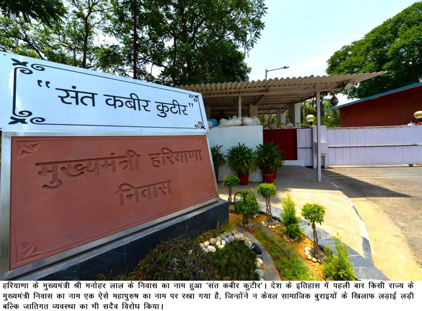 चंडीगढ़। देश के इतिहास में पहले बार किसी राज्य के मुख्यमंत्री निवास को एक ऐसे महापुरुष का नाम मिला है जिन्होंने न केवल सामाजिक बुराइयों के खिलाफ लड़ाई लड़ी बल्कि जातिगत व्यवस्था का भी कड़ा विरोध किया। यह निवास है हरियाणा के मुख्यमंत्री का चंडीगढ़ स्थित सरकारी आवास और वे महापुरुष थे संत कबीर दास जी। जो घोषणा रविवार को हरियाणा के मुख्यमंत्री मनोहर लाल ने रोहतक में संत कबीर दास जी की जयंती पर आयोजित समारोह में की थी उसे आज पूरा कर दिया गया और मुख्यमंत्री निवास के बाहर ‘संत कबीर कुटीर’ की पट्टिका लगा दी गई। उनके इस निर्णय से देश भर में बहुत सकारात्मक सन्देश गया है जिसका समाज का हर वर्ग कायल हो गया है।