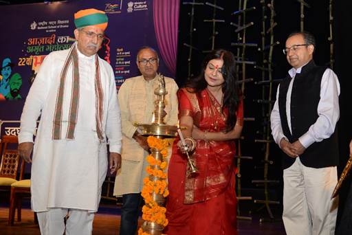 दिल्ली। भारत सरकार का संस्कृति मंत्रालय भारत की आजादी के 75वें वर्ष को आजादी का अमृत महोत्सव के रूप में मना रहा है। इस अवसर पर, राष्ट्रीय नाट्य विद्यालय(एनएसडी), नई दिल्ली की ओर से 16 जुलाई से 14 अगस्त 2022 तक “आजादी का अमृत महोत्सव – 22वां भारत रंग महोत्सव, 2022 (आजादी खंड)” नामक एकउत्सव  आयोजित किया जा रहा है, जो हमारे स्वतंत्रता सेनानियों को याद करने और उन्हें श्रद्धांजलि अर्पित करने के लिए “आजादी का अमृत महोत्सव 2022” केतहत किया जा रहा है। भारत सरकार के संसदीय कार्य एवं संस्कृति राज्य मंत्री अर्जुन राम मेघवाल ने इस उत्सव के शुरुआती कार्यक्रम का उद्घाटन किया। पद्मश्री से सम्मानित और प्रसिद्ध भारतीय लोक गायिका मालिनी अवस्थी और अरविंद कुमार तथा संस्कृति मंत्रालय के निदेशक भी इस अवसर पर उपस्थित लोगों में शामिल थे।