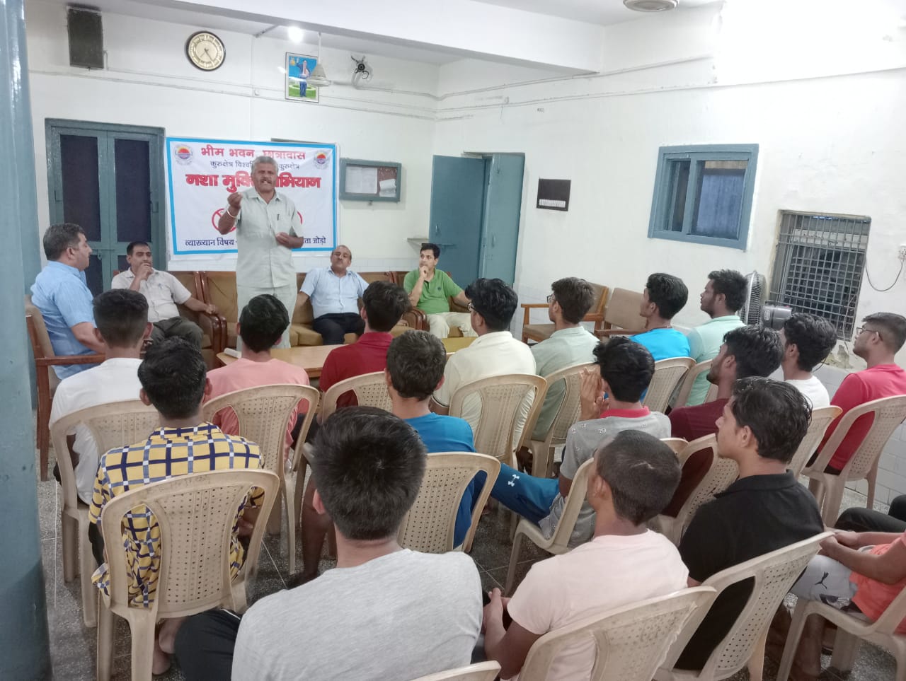 कुरुक्षेत्र। कुरुक्षेत्र विश्वविद्यालय के भीम भवन छात्रावास में नशा मुक्ति अभियान के तहत नशा छोड़ो, जीवन से नाता जोड़ो विषय पर व्याख्यान का आयोजन किया गया जिसमें हरियाणा पुलिस के ए.एस. आई., यातायात समन्वयक और एपीआरओ. रोशन लाल ने छात्रों को सम्बोधित किया और युवाओं को नशे से दूर रहने के तरीकों पर विस्तार से प्रकाश डाला। रोशन लाल ने कहा कि युवाओं को अपनी ऊर्जा को सही दिशा में लगाने से ही छात्रों का भविष्य उज्ज्वल होगा। युवा देश का भविष्य हैं। हमें नशे जैसी चीज़ को एक शौक के रूप में भी प्रयोग नही करना चाहिए। हमें जितना हो सके इससे दूर ही रहना चाहिए और ज्यादातर युवाओं को जागरूक करना चाहिए। अगर हमें एक मजबूत राष्ट्र का निर्माण करना है, तो हमे नशे जैसी चीज को जड़ से उखाड़ फेंकना चाहिए।