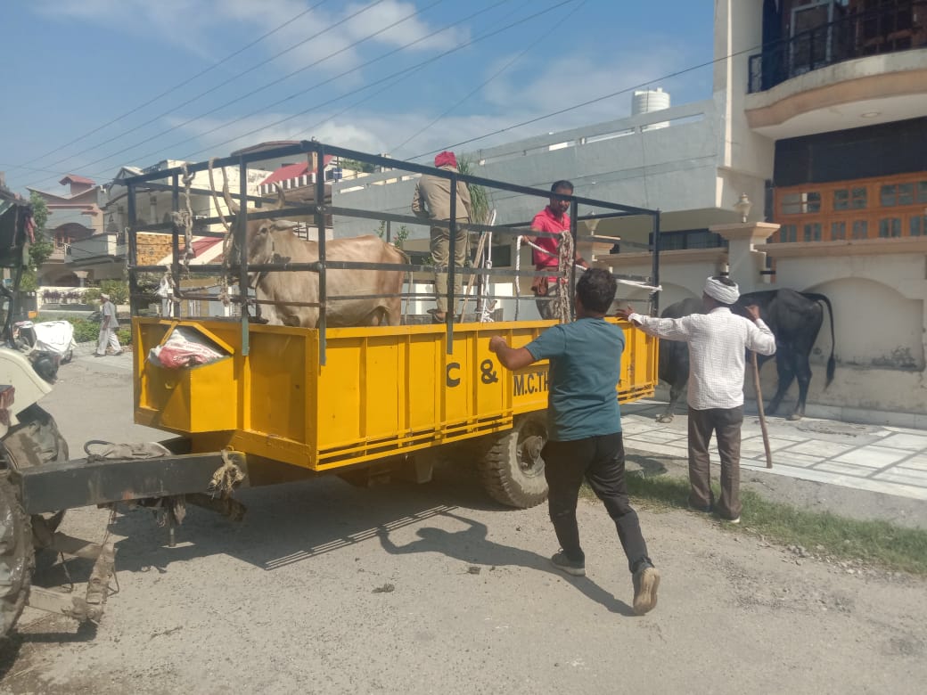 डीएमसी ममता शर्मा ने आज यहां बातचीत करते हुए कहा कि नगर परिषद ने सेक्टर-13 में अलग-अलग स्थानों से करीब 10 पशुओं को पकडक़र गऊशालाओं में भेजा है। इस अभियान में नगर परिषद ने जसबीर सिंह, पूर्ण दास, दलविंद्र बिट्टू व ट्रैक्टर चालक सुनील कुमार लगे हुए है। उन्होंने कहा कि विधायक सुभाष सुधा और उपायुक्त मुकुल कुमार के आदेशानुसार आमजन की समस्या को जहन में रखते हुए नगर परिषद थानेसर ने तुरंत प्रभाव से अपने संसाधनों का प्रयोग करते हुए बेसहारा पशुओं को गौशाला तक पहुंचाने का काम किया जा रहा है। उन्होंने कहा कि शहर को बेसहारा पशुओं से फ्री करने के लिए नगर परिषद के अधिकारी व कर्मचारी तेजी से कार्य करें। इस मामले को गंभीरता से लेकर कार्य करना सुनिश्चित करें।