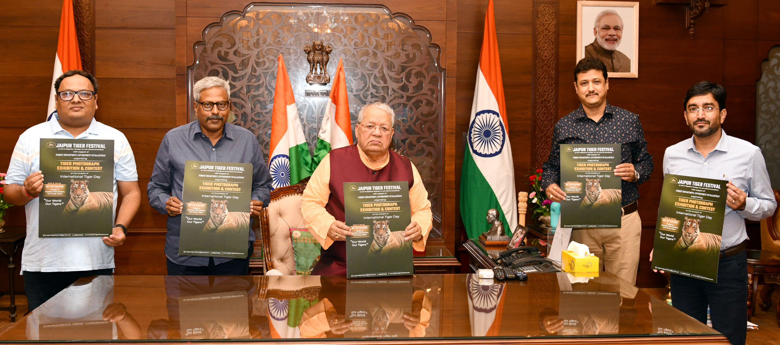 जयपुर। राज्यपाल कलराज मिश्र ने जयपुर टाइगर फेस्टिवल की ओर से आयोजित की जा रही बाघ फोटो प्रदर्शनी एवं प्रतियोगिता के पोस्टर का बुधवार को राजभवन में लोकार्पण किया। राज्यपाल से मुलाकात में जयपुर टाइगर फेस्टिवल के आशीष बैद और धीरेन्द्र गोधा ने बताया कि अंतरराष्ट्रीय बाघ दिवस (29 जुलाई) पर जवाहर कला केन्द्र में यह प्रदर्शनी आयोजित की जाएगी।