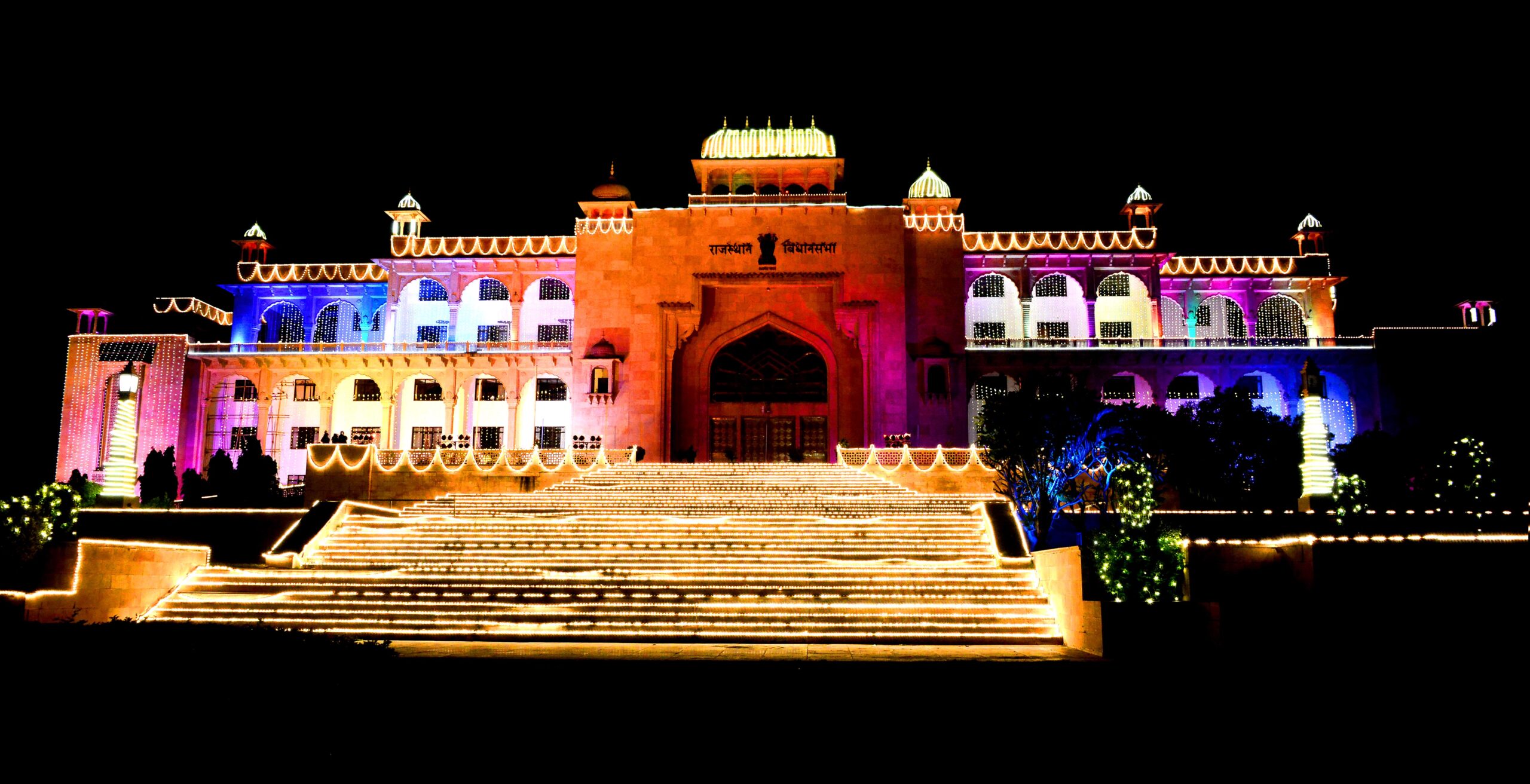 जयपुर। स्वाधीनता दिवस की पूर्व संध्या पर शनिवार को राजधानी जयपुर के स्मारकों तथा सरकारी इमारतों को रंगीन लाइटों से सजाया गया।राजधानी की सभी प्रमुख सरकारी इमारतों पर रोशनी की गई। विधानसभा भवन, अमर जवान ज्योति, शासन सचिवालय सहित विद्युत भवन, आवासन मंडल, एलिविटेड पुलिया एवं स्टेच्यू सर्किल आदि स्थान खूबसूरत रोशनी में जगमगा गये।