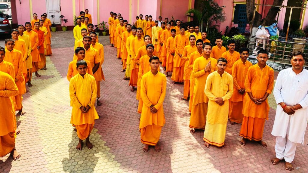 श्री जयराम संस्कृत महाविद्यालय के विद्यार्थियों ने मंत्रोच्चारण के देवेंद्र स्वरूप ब्रह्मचारी को याद किया