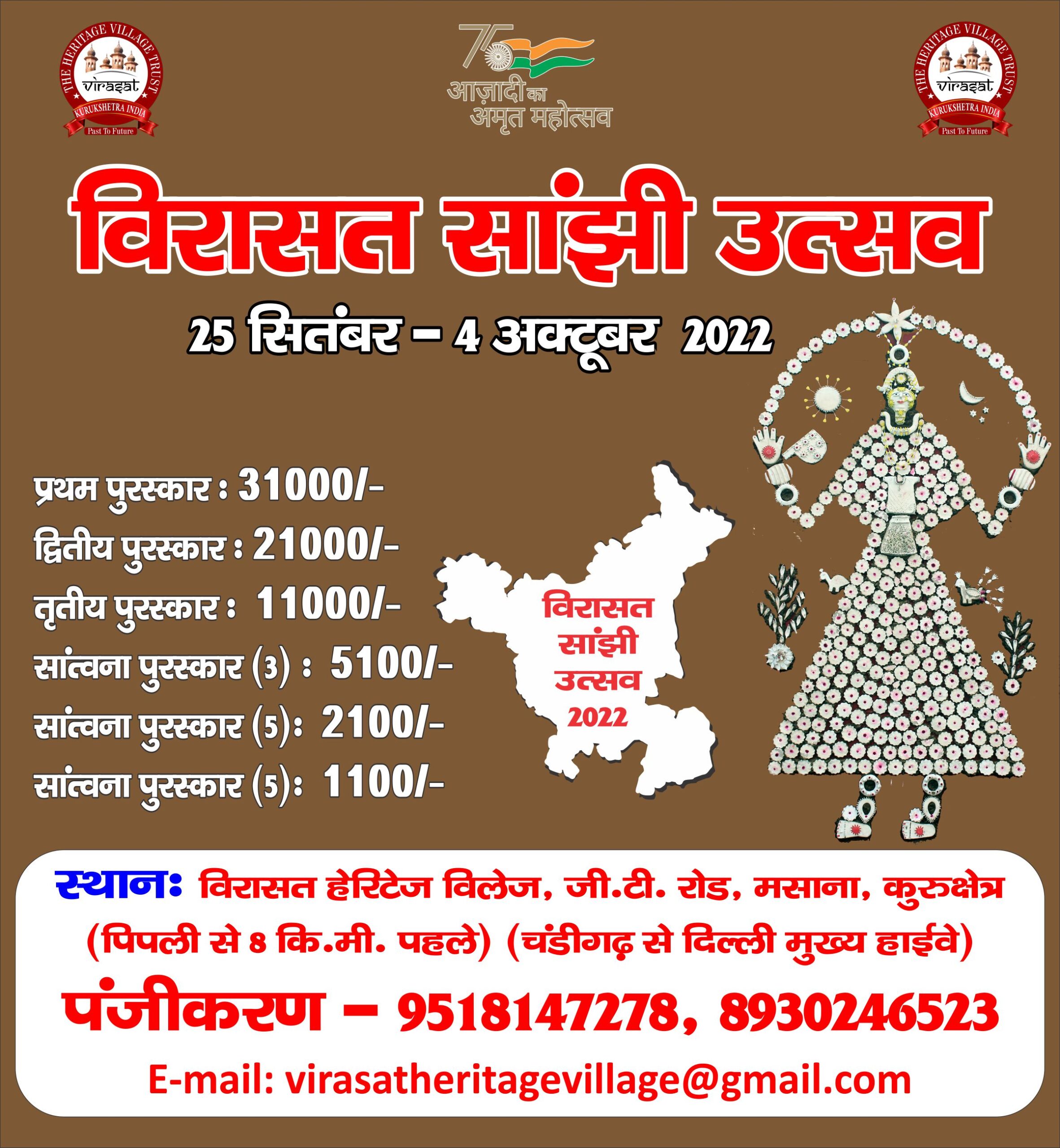 विरासत हेरिटेज विलेज में सांझी प्रतियोगिता 25 सितंबर 2022 को…