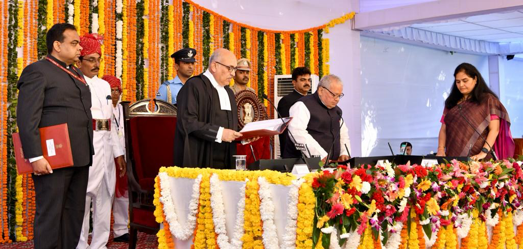 जयपुर। राज्यपाल कलराज मिश्र ने शुक्रवार को यहां राजभवन में जस्टिस पंकज मिथल को राजस्थान उच्च न्यायालय के मुख्य न्यायाधीश पद की शपथ दिलाई। जस्टिस मिथल ने हिन्दी भाषा में शपथ ली। समारोह के प्रारम्भ में मुख्य सचिव उषा शर्मा ने जस्टिस मिथल को शपथ दिलवाने का आग्रह किया। समारोह में मुख्यमंत्री अशोक गहलोत, विधानसभा अध्यक्ष सी.पी. जोशी, नेता प्रतिपक्ष गुलाब चन्द कटारिया, मंत्रिमण्डल के सदस्यगण, जनप्रतिनिधिगण, राजस्थान उच्च न्यायालय के न्यायाधीशगण, अधिकारीगण, अधिवक्तागण एवं जस्टिस मिथल के परिजन उपस्थित रहे।