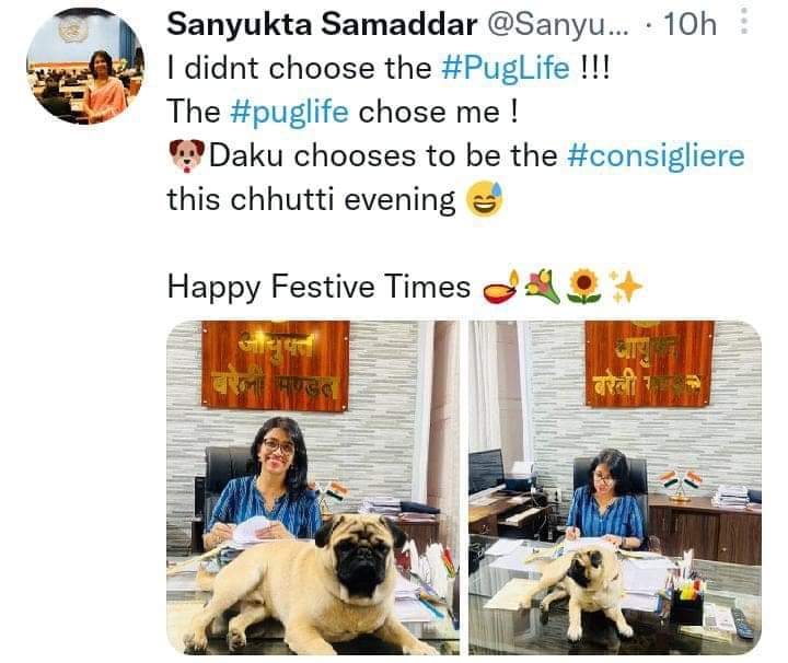 काबिलेगौर है कि बरेली की मंडलायुक्त हैं संयुक्ता समद्दार,जी उन्हीं के ट्वीटर हैंडल से कमिशनर आफिस की टेबल पर आराम से बैठे पग जी की फोटो यूं ही फुर्सत के पल के साथ शायद शेयर की गई थी। इस फोटो में कमिशनर आवास में बने कार्यालय की बताई जा रही है।यहां कमिश्नर अपने कार्यालय में छुट्टी के दिन आवश्यक फाइलों का निपटान कर रहीं हैं। इस दौरान उनका पग जी भी टेबल पर बैठा दिख रहा है। इस फोटो पर विवाद खड़ा हुआ तो पता चला बरेली कमिश्नर अपने आवास पर सरकारी फाइलों को निपटाने में व्यस्त थीं और इसी बीच उनका पग जी टेबल पर चढ़ गया।