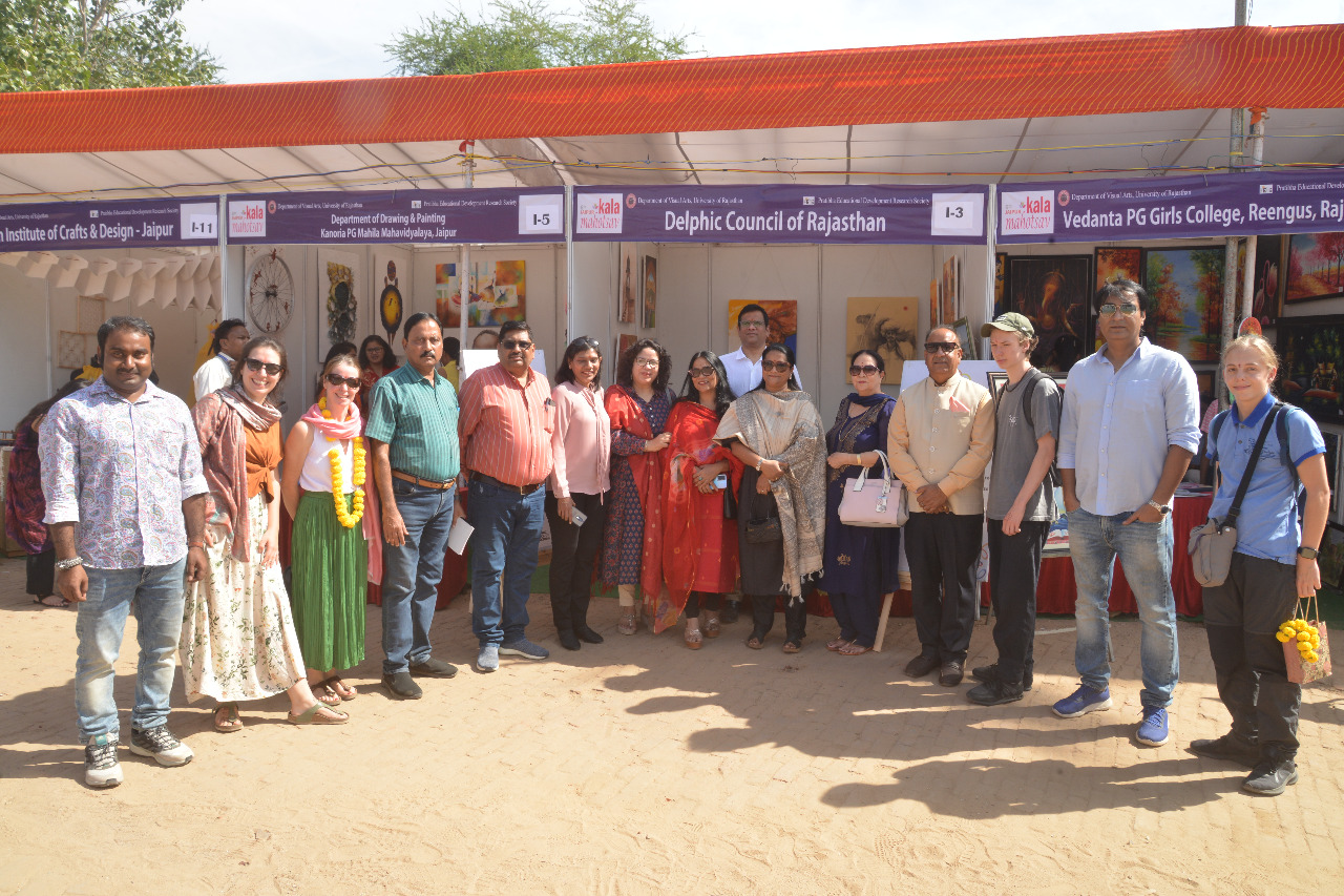जयपुर। डेल्फिक काउंसिल ऑफ राजस्थान ने रविवार को जवाहर कला केंद्र (जेकेके) में कला शिविर में ’म्हारो राजस्थान’ का आयोजन किया तथा प्रदर्शनी में स्टॉल का उद्घाटन किया। कार्यक्रम में जर्मन आर्ट स्कूल के विद्यार्थी राजस्थानी कलाकारों से रूबरू हुए एवं राजस्थानी कला एवं संस्कृति को समझा। उन्होंने पेटिंग्स की विविध कलाओं के कलाकारों से जर्मन कला को साझा किया।