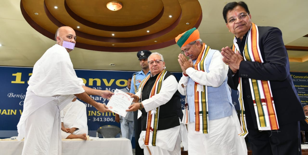 केंद्रीय मंत्री अर्जुन राम मेघवाल ने अपने संबोधन में कहा कि संस्थान के विद्यार्थी भारत को विकसित भारत बनाने में योगदान दें। उन्होंने विश्वविद्यालय को नैतिक शिक्षा देने वाला अनुपम संस्थान बताया । अनुशास्ता आचार्य महाश्रमण ने पदक व डिग्री प्राप्त करने वाले विद्यार्थियों व शोधार्थियों को अनुशासन की सीख दी और कहा कि ज्ञान जीवन का पवित्र तत्व है इसे आत्मसात करें। राज्यपाल मिश्र ने समारोह में उपस्थित सभी को संविधान की प्रस्तावना का वाचन करवाया एवं मूल कर्तव्य पढ़ कर सुनाए।कार्यक्रम में विशिष्ट अतिथि पूर्व लोकसभा सदस्य संजीव नायक,कुलपति प्रो. बच्छराज दुगड सहित अन्य उपस्थित थे।