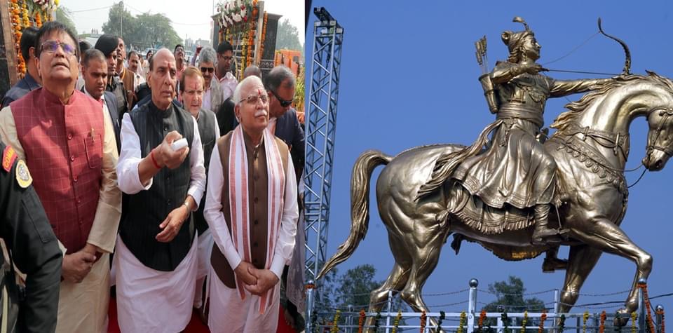 रक्षा मंत्री राजनाथ सिंह ने मुख्यमंत्री मनोहर लाल की गरिमामयी उपस्थिति में किया कुलाना में पृथ्वीराज चौहान की प्रतिमा का अनावरण
