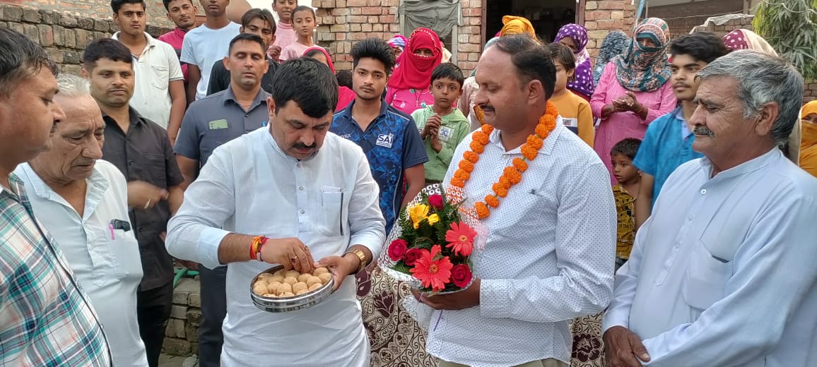 महम। जनसेवक मंच संयोजक एवं महम विधायक बलराज कुंडू नवनिर्वाचित सरपंचों को बधाई देने के क्रम में आज भी करीब दर्जनभर गांवों में पहुंचे और नवनिर्वाचित सरपंचों को पुष्पगुच्छ भेंट कर फूल-मालाओं से स्वागत करते हुए गाय के देसी घी से बने लड्डू खिलाकर उनको शुभकामनाएं दी। बलराज कुंडू ने कहा कि छोटी सरकार को दलगत राजनीति से ऊपर उठकर क्षेत्र के विकास के लिये आपसी सामंजस्य से कार्य करना होगा और विधायक होने के नाते बिना किसी भेदभाव के हर संभव मदद के लिये वो हमेशा तैयार हैं क्योंकि ढ़र्रे की राजनीति से क्षेत्र का कभी भला नहीं हो सकता, पुरानी परम्पराओं को तोड़ते हुए दलगत राजनीति से ऊपर उठकर ही हम आम जनमानस की सही मायने में सेवा कर सकते हैं। इसलिये हम सभी का दायित्व बनता है कि हम सभी साथ मिलकर आम जनमानस की भलाई के लिये संकल्पित होकर काम करें।