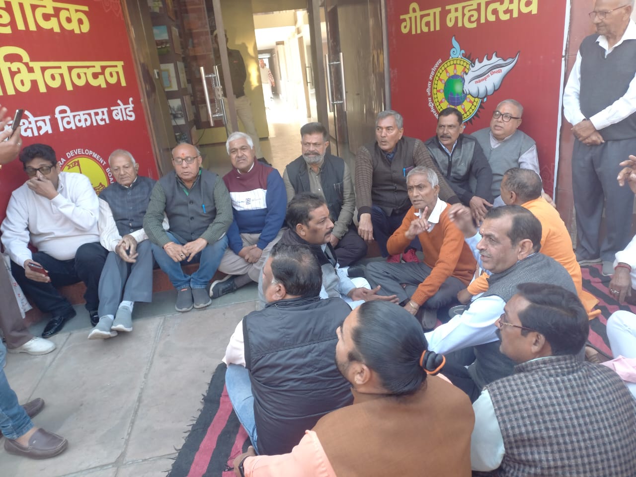 कुरुक्षेत्र। सन्निहित सरोवर पर स्थित वीटा बूथ को बंद करवाने की मांग को लेकर श्रीब्राह्मण एवं तीर्थोद्धार सभा ने कुरुक्षेत्र विकास बोर्ड कार्यालय के सामने लगभग एक घंटे तक प्रदर्शन किया और केडीबी प्रशासन के विरुद्ध जमकर नारेबाजी की। सभा के मुख्य सलाहकार जयनारायण शर्मा तथा प्रधान श्याम सुंदर तिवारी ने आरोप लगाया कि पवित्र सन्निहित सरोवर के किनारे स्थित इस वीटा बूथ में लगभग एक वर्ष पूर्व मीट बनते हुए पकड़ा गया था, जिसकी वीडियो वायरल हुई थी। उस समय विकास बोर्ड ने एनओसी रद्द कर दी थी। जिस पर वीटा के अधिकारियों ने जांच करते हुए इस मामले को सही पाया था और बूथ की अलॉटमेंट रद्द कर दी गई थी और उसी समय से यह बूथ बंद पड़ा हुआ है। कल बूथ को दोबारा खोलने का प्रयास किया था और पता चला है कि केडीबी प्रशासन द्वारा दोबारा से एनओसी जारी करने पर वीटा ने बूथ की अलॉटमेंट उसी व्यक्ति को कर दी जिसके पास यह बूथ पहले था।