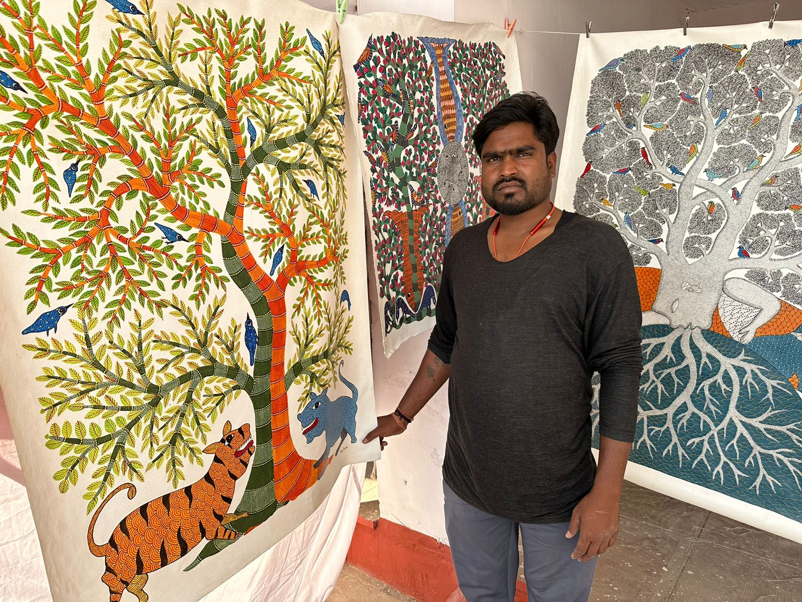 मध्य प्रदेश के गांव ढिंढौरी से आए संतु सिंह टेकम का कहना है कि अंतर्राष्ट्रीय गीता महोत्सव-2022 में पहली बार आए है। इस बार मध्य प्रदेश पार्टनर राज्य होने के कारण जनजाति संग्रहालय भोपाल की तरफ से भेजा गया है। इस महोत्सव में मध्य प्रदेश की प्रसिद्ध पेंटिंग कला को लेकर आए है। इस पेंटिंग कला को गोंड ट्राइबल आर्ट के नाम से जाना जाता है। यह आर्ट पूरे विश्व में प्रसिद्ध है। इस कला को वर्ष 2006 से अडोप्ट किया था और अपने पूर्वजों से इस कला की सौगात मिली थी। इस कला को लेकर उन्हें दिल्ली, लखनऊ सहित अन्य राज्यों में विशेष प्रशंसा पत्र देकर सम्मानित भी किया जा चुका है।
