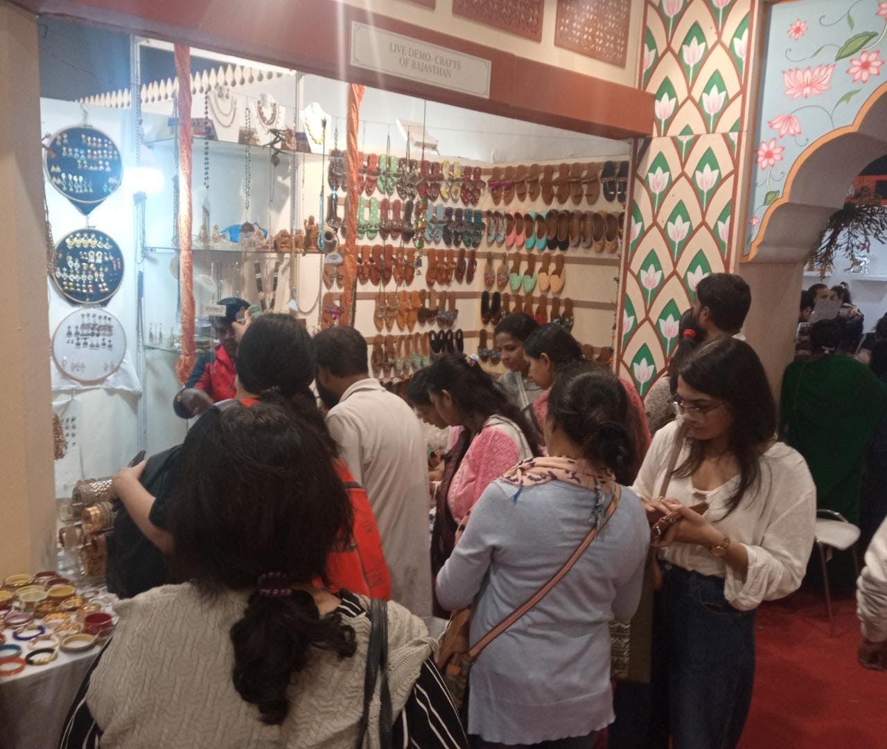 जयुपर। नई दिल्ली के प्रगति मैदान में चल रहे अन्तर्राष्ट्रीय व्यापार मेले में राजस्थान पवेलियन में सदाबहार राजस्थानी जूतियों एवं परम्परागत मोजड़ियों को दर्शकों द्वारा काफी पसंद किया जा रहा है।राजस्थान से आये जूतियों के एक निर्माता किशोर ने बताया कि राजस्थानी जूतियां विशेष कारीगरी के साथ चमड़े से बनाई जाती है।