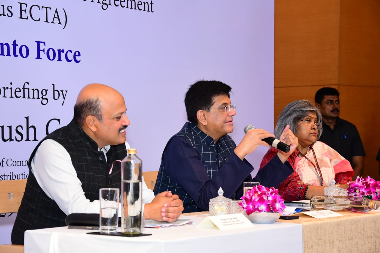 ईसीटीए के तहत भारत में 10 लाख अतिरिक्त रोजगार सृजित किए जाएंगे : वाणिज्य एवं उद्योग मंत्री श्री पीयूष गोयल