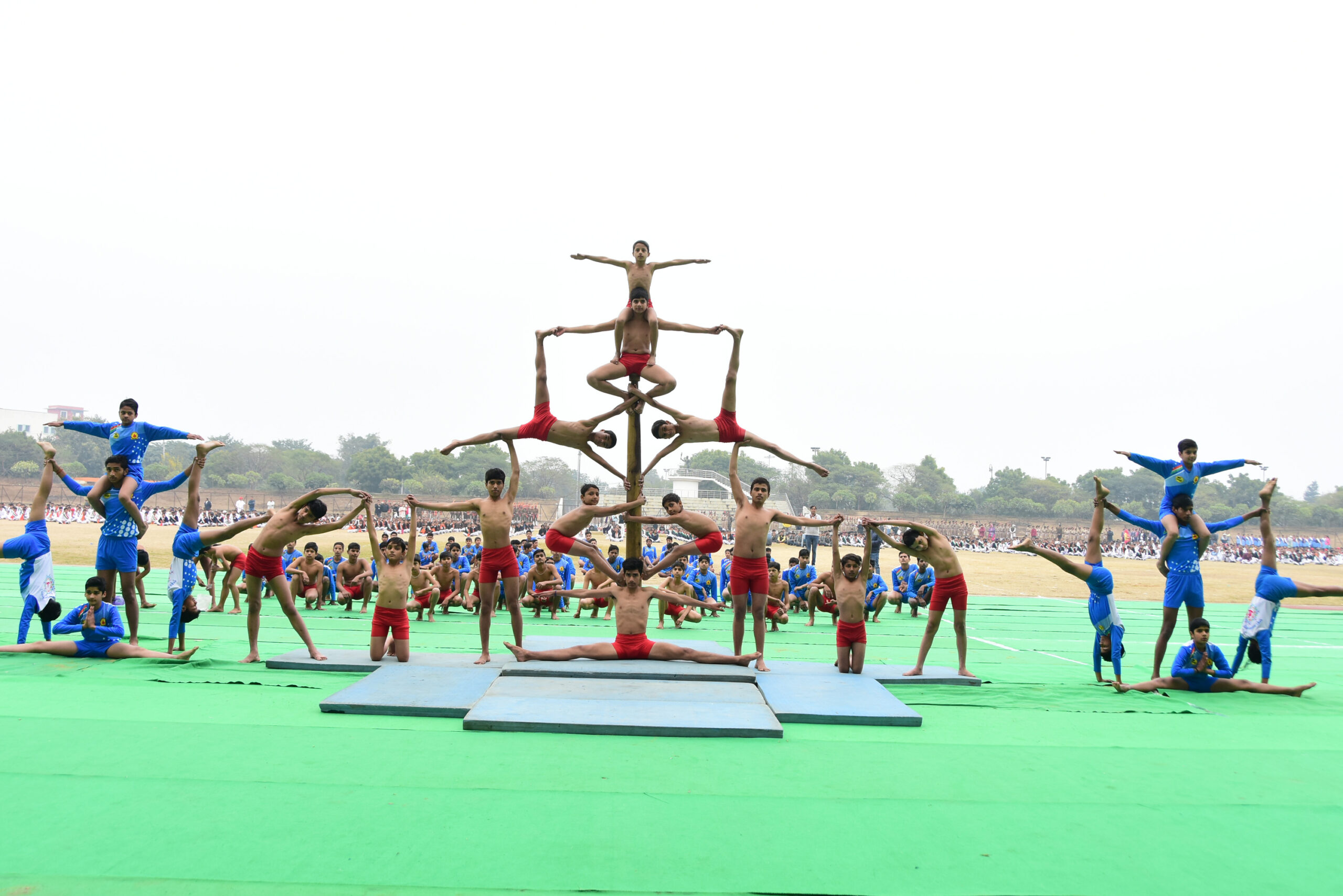 इसके उपरांत शिक्षा विभाग की देखरेख में विभिन्न 17 विद्यालयों के छठी से बाहरवीं कक्षा के 1520 विद्यार्थियों ने सामूहिक शारीरिक अभ्यास पर शानदार प्रदर्शन किया। उन्होंने बैंड की धुन पर लेजियम व डम्बल का भी सामूहिक प्रदर्शन किया। लाढ़ौत स्थित गुरुकुल के 102 विद्यार्थियों ने सूर्य नमस्कार के साथ-साथ मलखंब के प्रदर्शन से दर्शकों की तालियां बटौरी।