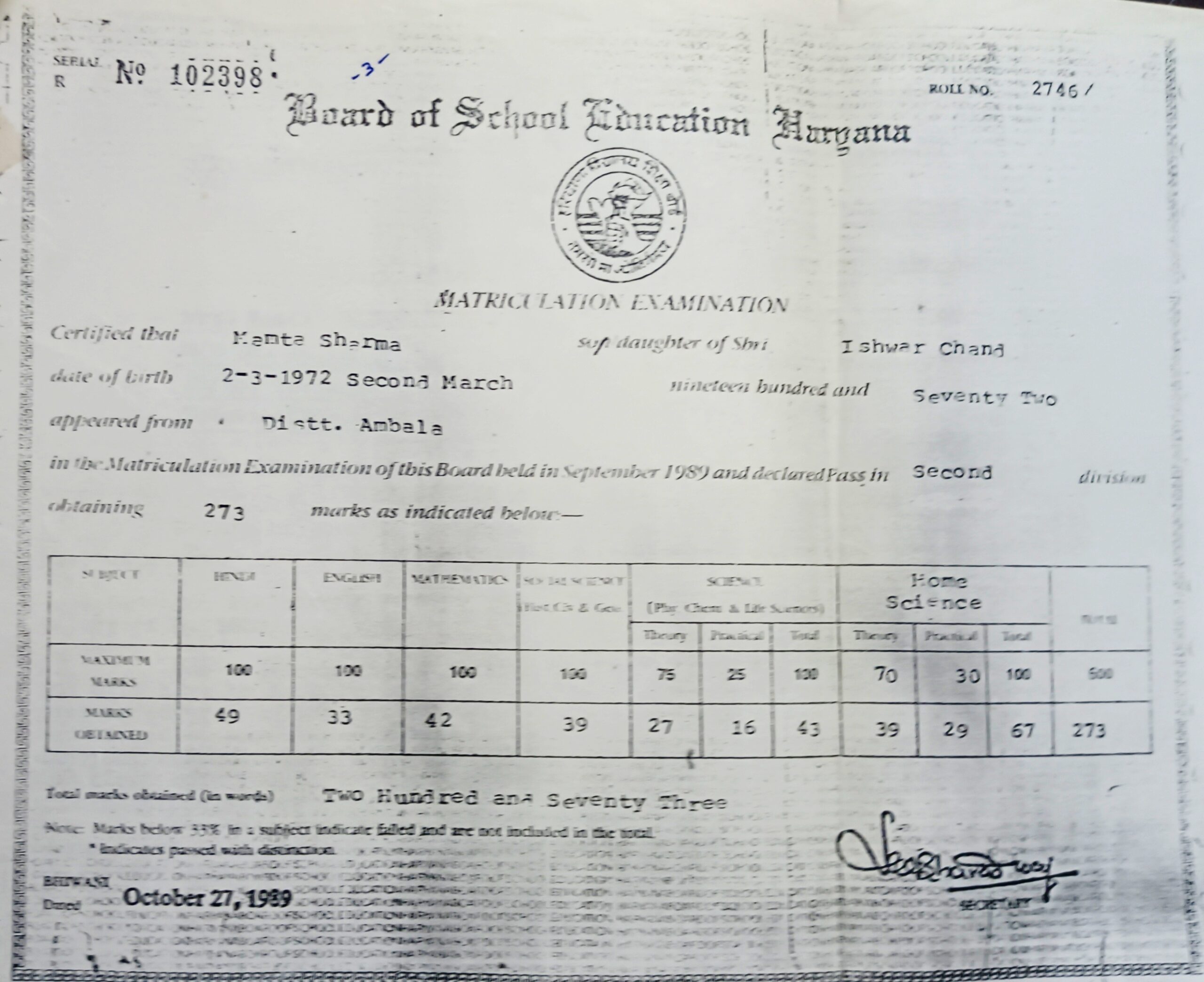पवन आश्री की पत्नी के दसवीं में नंबर, नजर डालें