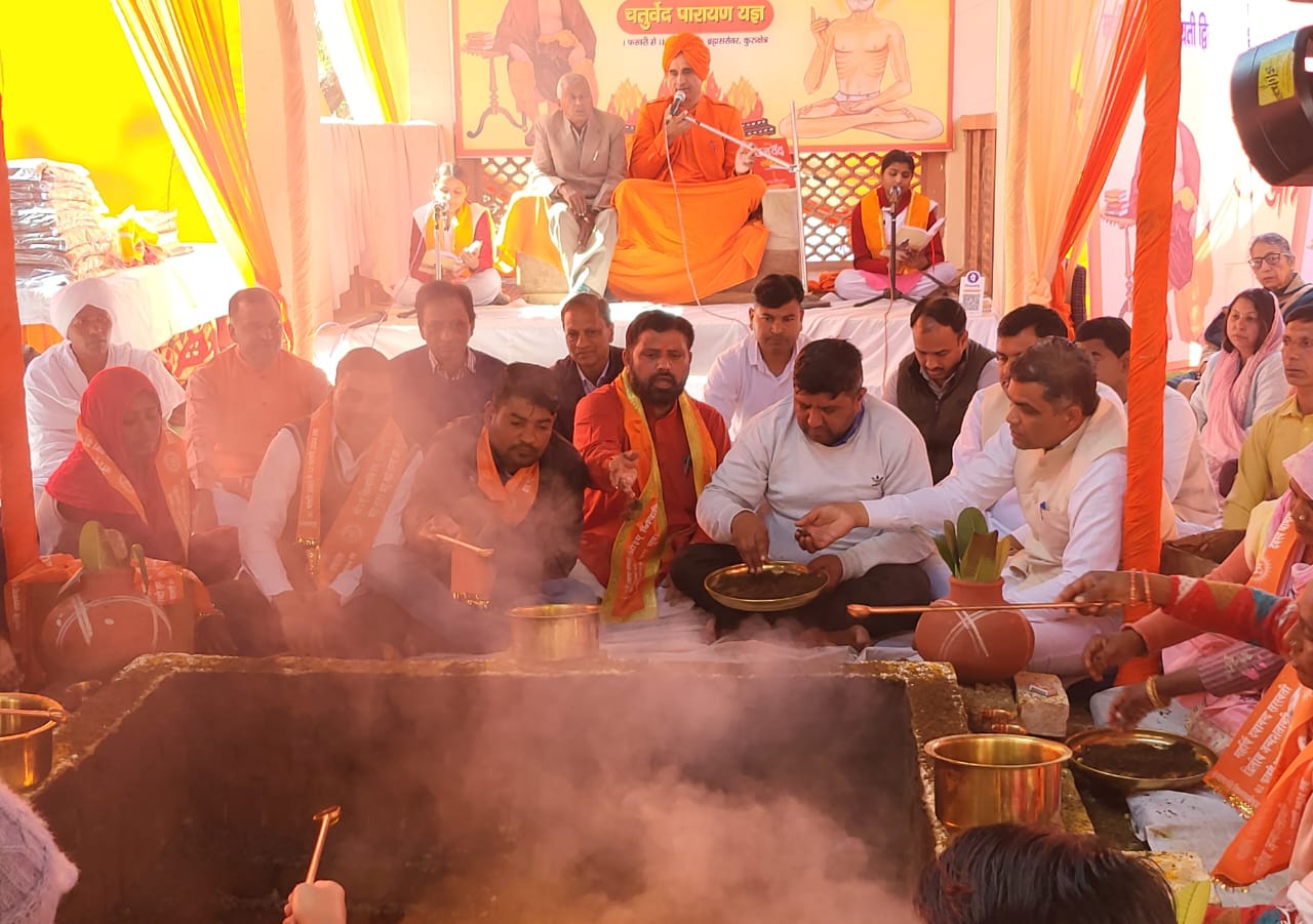 ब्रहमसरोवर पर चल रहे चतुर्वेद पारायाण यज्ञ में संत रविदास जयंति पर सफाई कर्मियों ने वेद मंत्रों पर यज्ञ में डाली आहुति