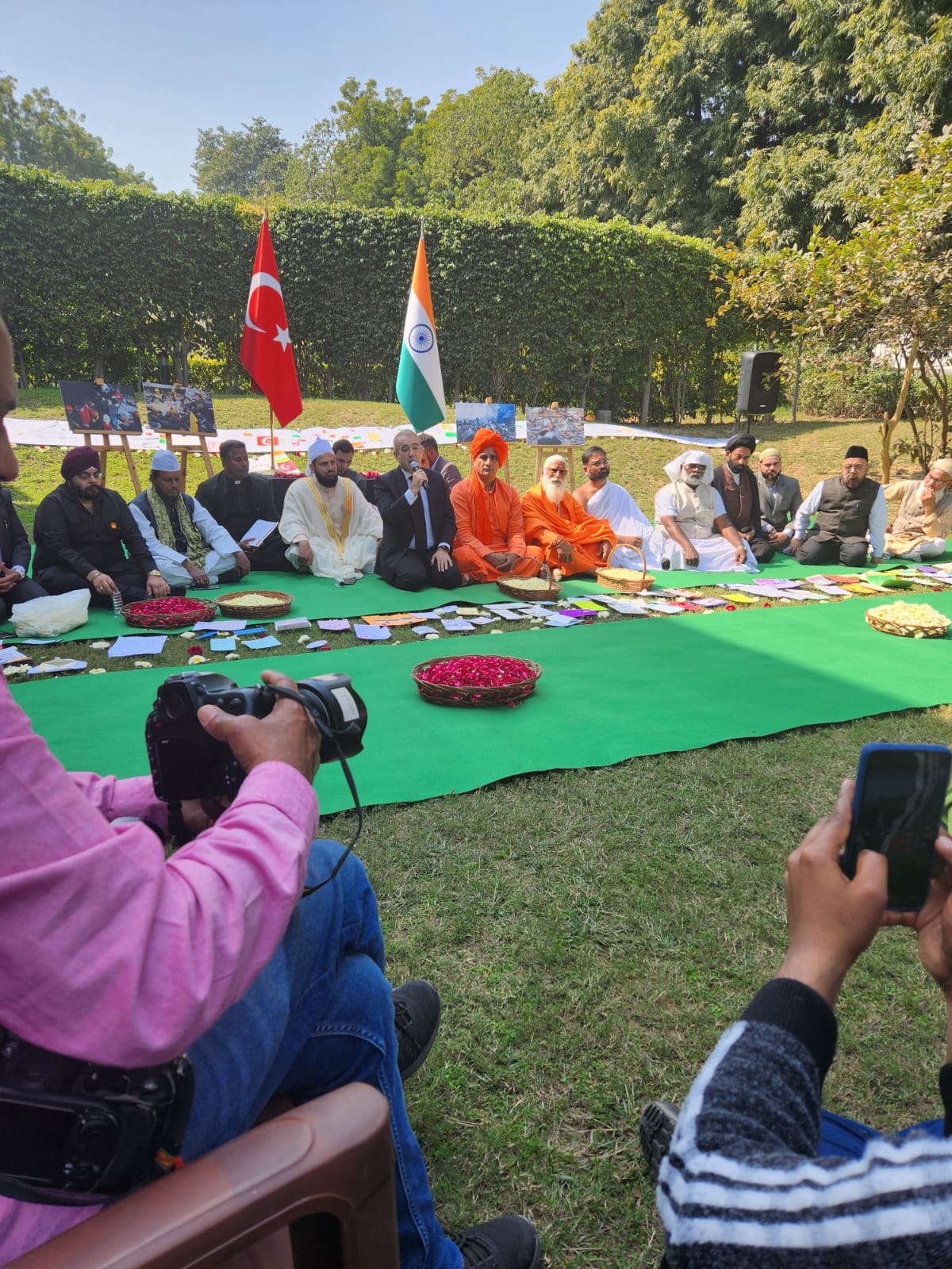 फोटो कैप्शन: तुर्की दुतावास दिल्ली में आयोजित सर्वधर्म प्रार्थना सभा में भाग लेते स्वामी सम्मपूर्णानन्द सरस्वती