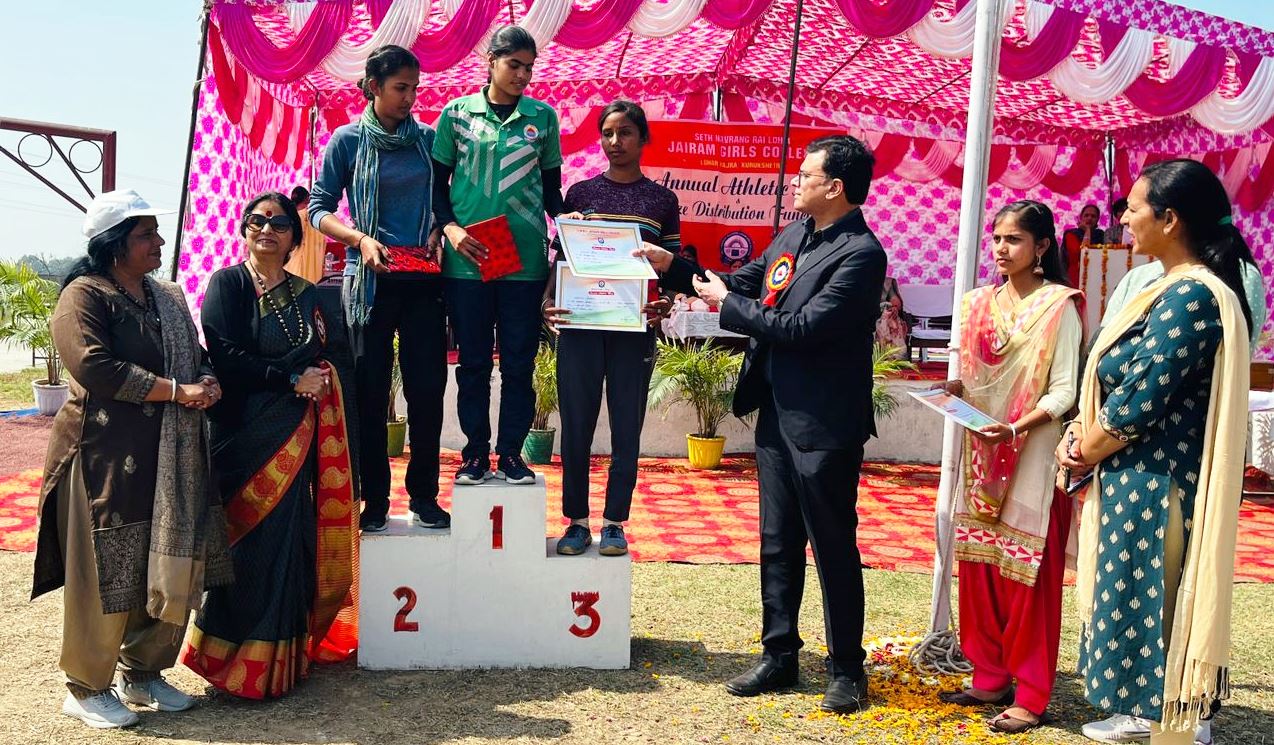 कुरुक्षेत्र । देशभर में संचालित श्री जयराम संस्थाओं के परमाध्यक्ष एवं श्री जयराम शिक्षण संस्थान के चेयरमैन ब्रह्मस्वरूप ब्रह्मचारी की प्रेरणा से ग्रामीण आंचल की कन्याओं को उच्च शिक्षा प्रदान करने के उद्देश्य से गतिमान सेठ नवरंग राय लोहिया जयराम कन्या महाविद्यालय के प्रांगण में चल रही दो दिवसीय एथलेटिक्स मीट का समापन हुआ। इस समारोह का शुभारम्भ संस्थान के श्री जयराम शिक्षण संस्थान के निदेशक एस.एन.गुप्ता, डा. योगेश्वर जोशी तथा प्राचार्या डा. सुदेश रावल जी ने किया। इस समारोह के दुसरे दिन मुख्य अतिथि के तौर पर सैनसंस पेपर इंडस्ट्रीज लिमिटेड के सीनियर वाइस चेयरमैन सुशील सदाना ने शिरकत की। इस अवसर पर प्राचार्या डा. सुदेश रावल जी ने मुख्य अतिथि एवं सभी गणमान्य अतिथियों का स्वागत किया। इस अवसर पर 100 मीटर, 200 मीटर, 400 मीटर रेस, रिले रेस 4 इन टू 100 मीटर, शॉट पुट, डिस्कस थ्रो, जेवलिन थ्रो, थ्री लेग रेस और लेमन रेस आयोजित की गई। जिसके परिणाम इस प्रकार रहे:-