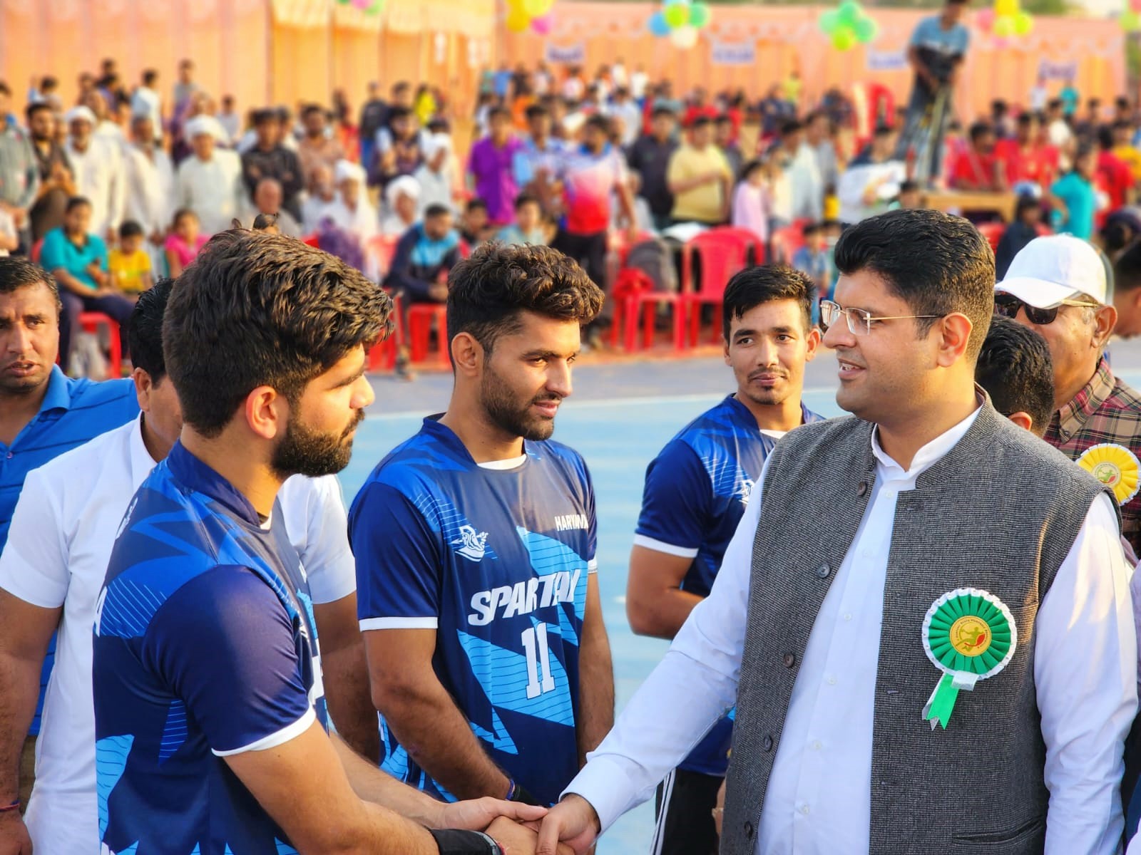 उपमुख्यमंत्री दुष्यंत चौटाला ने कहा कि खेल भविष्य को मजबूती प्रदान करते है। खेल में हार-जीत होती रहती है लेकिन खेल को मन लगाकर खेलना चाहिए, खिलाड़ी को अवश्य सफलता मिलेगी। उन्होंने कहा कि गांव में बाहर से आए खिलाड़ियों को किसी प्रकार की परेशानी न हो, इसके लिए ग्रामीण खिलाड़ियों की मेहमान बाजी में कमी न रहने दें। दुष्यंत चौटाला ने कहा कि हरियाणा में जी-20 देशों का डेलिगेशन आया हुआ है, जिन्हें हरियाणवी संस्कृति से रूबरू कराया जा रहा है, ऐसे में ग्रामीण विभिन्न प्रदेशों से आए खिलाड़ियों को भी हरियाणवी सभ्यता और संस्कृति से रूबरू कराए। डिप्टी सीएम दुष्यंत चौटाला ने कहा कि हरियाणा देशभर में खेलों का हब बन चुका है। प्रदेश के खिलाड़ी अपनी प्रतिभा के बलबूते पर देश विदेशों में हरियाणा का नाम रोशन कर रहे हैं।