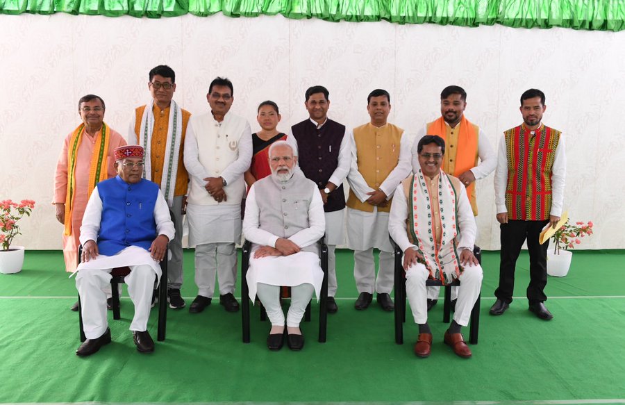 दिल्ली। प्रधानमंत्री नरेंद्र मोदी ने आज डॉ. माणिक साहा को त्रिपुरा के मुख्यमंत्री पद और उनके सहयोगियों को राज्य सरकार में मंत्री पद की शपथ लेने पर बधाई दी। इस अवसर पर प्रधानमंत्री उपस्थित थे। प्रधानमंत्री ने ट्वीट किया“डॉ. माणिक साहा जी और पूरी टीम को आज शपथ लेने पर बधाई। यह टीम निश्चित रूप से एक बार फिर लोगों द्वारा दिए गए जनादेश की आकांक्षाओं को पूरा करेगी और त्रिपुरा की विकास यात्रा को गति देगी। उनके प्रयासों के लिए मेरी शुभकामनाएं।