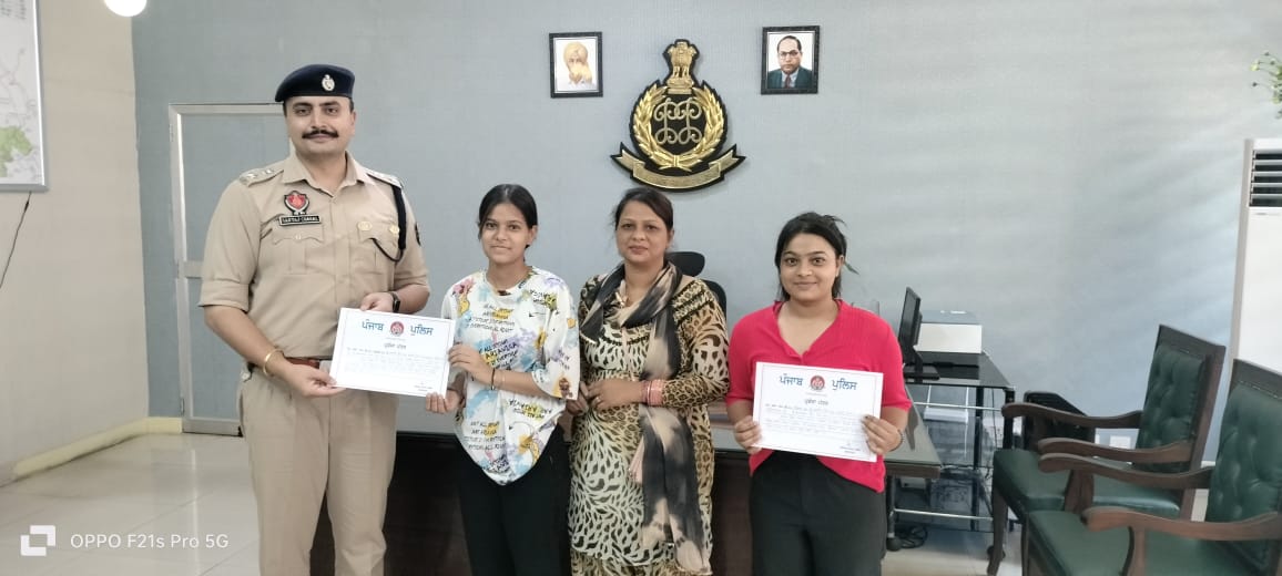 उन्होंने बताया कि दिल्ली से आई अपनी मौसी की बेटी ईशा के साथ बीती 22 अप्रैल को होशियारपुर के सैशन चौक-रेलवे रोड स्थिति ए.टी.एम से पैसे निकलवाने आई इन बच्चियों को दो लुटेरों ने हथियार दिखाकर इनसे 7500 रुपए लूट लिए थे, परंतु इन लड़कियों ने बड़ी हिम्मत व बहादुरी के साथ उनको घेर कर पकड़ लिया व लोगों की मदद से 7500 रुपए हासिल कर लिए। उन्होंने कहा कि जिला पुलिस ऐसी हिम्मती बेटियों को सलाम करती है और उनकी हौंसला आफजाई के लिए हमेशा वचनबद्ध है।