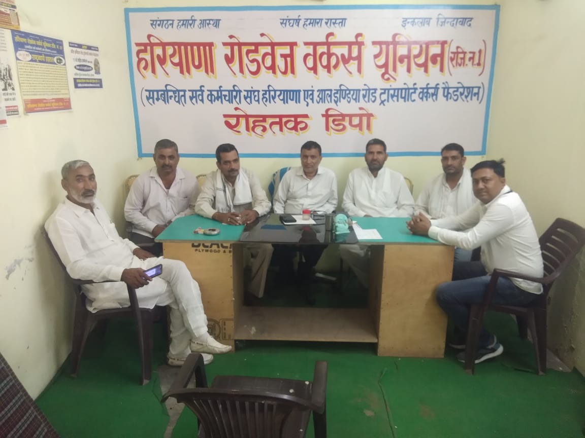 चंडीगढ़। आज हरियाणा रोडवेज वर्कर्स यूनियन (संबंधित सर्व कर्मचारी संघ हरियाणा) डिपो कमेटी की मीटिंग आपात स्थिति में डिपो प्रधान नरेश सिवाच की अध्यक्षता में बुलाई गई। इस बैठक का संचालन डिपो सचिव जयकुंवार दहिया द्वारा किया गया मीटिंग में मुख्य रूप से हरियाणा सरकार के रोडवेज कर्मचारियों के प्रति स्थानांतरण की जो नीति लागू की गई है इसका सर्वसम्मति से आपत्ति जताते हुए घोर निंदा प्रस्ताव पास किया गया। मीटिंग में कर्मचारी नेता जयकुॅवार दहिया ,सुमेर सिवाच , नरेश सिवाच,पूर्व डिपो सचिव सतवीर मुंढाल आदि नेताओं द्वारा बताया गया कि प्रदेश के परिवहन मंत्री द्वारा यूनियन से वार्ता में बार-बार यह आश्वासन दिया गया था कि स्थानांतरण नीति बनाने से पहले कर्मचारी के दूख दर्द को देखते हुऐ किसी भी प्रकार की कोई आपत्तिजनक बात नहीं होगी और प्रत्येक कर्मचारी को 50 किलोमीटर के दायरे में रखा जाएगा।