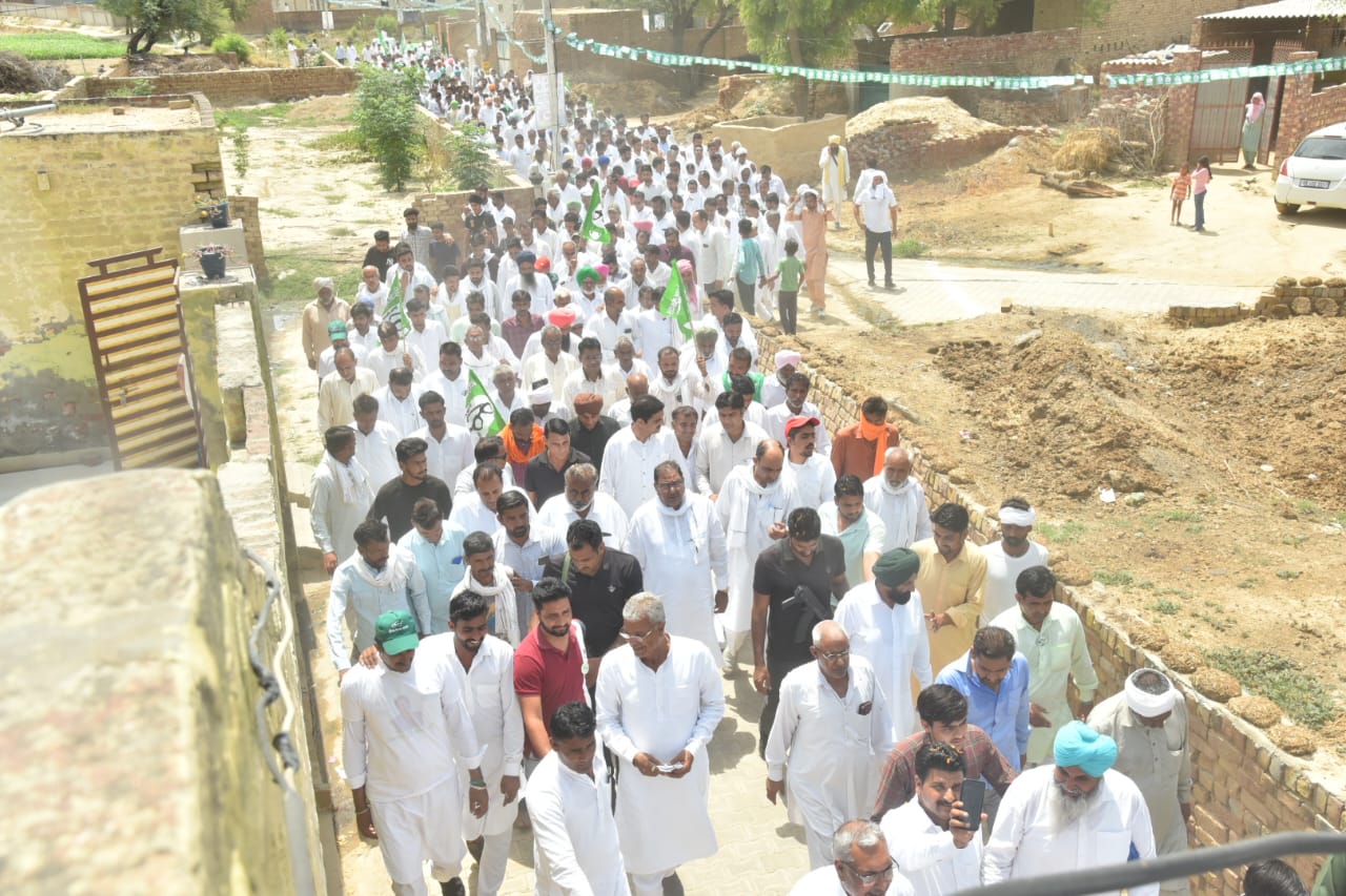 अभय चौटाला ने कहा कि वे अपनी इस परिवर्तन पदयात्रा के तहत अब तक करीब 2200 किलोमीटर का फासला तय करते हुए लगभग 1100 गांवों में जा चुके हैं और इन सभी गांवों में एक तस्वीर साफ तौर पर उभर कर सामने आई कि लोग न केवल बदलाव चाहते हैं बल्कि इन सभी ने इनेलो की सरकार लाने का संकल्प लिया है। उन्होंने कहा कि इनेलो की सरकार आने पर बुजुर्गों की पैंशन 7500 रुपए की जाएगी और पढ़े लिखे युवाओं को नौकरी दी जाएगी। इसके अलावा नौकरी न मिलने तक युवाओं को 21000 रूपए बेरोजगारी भत्ता दिया जाएगा।