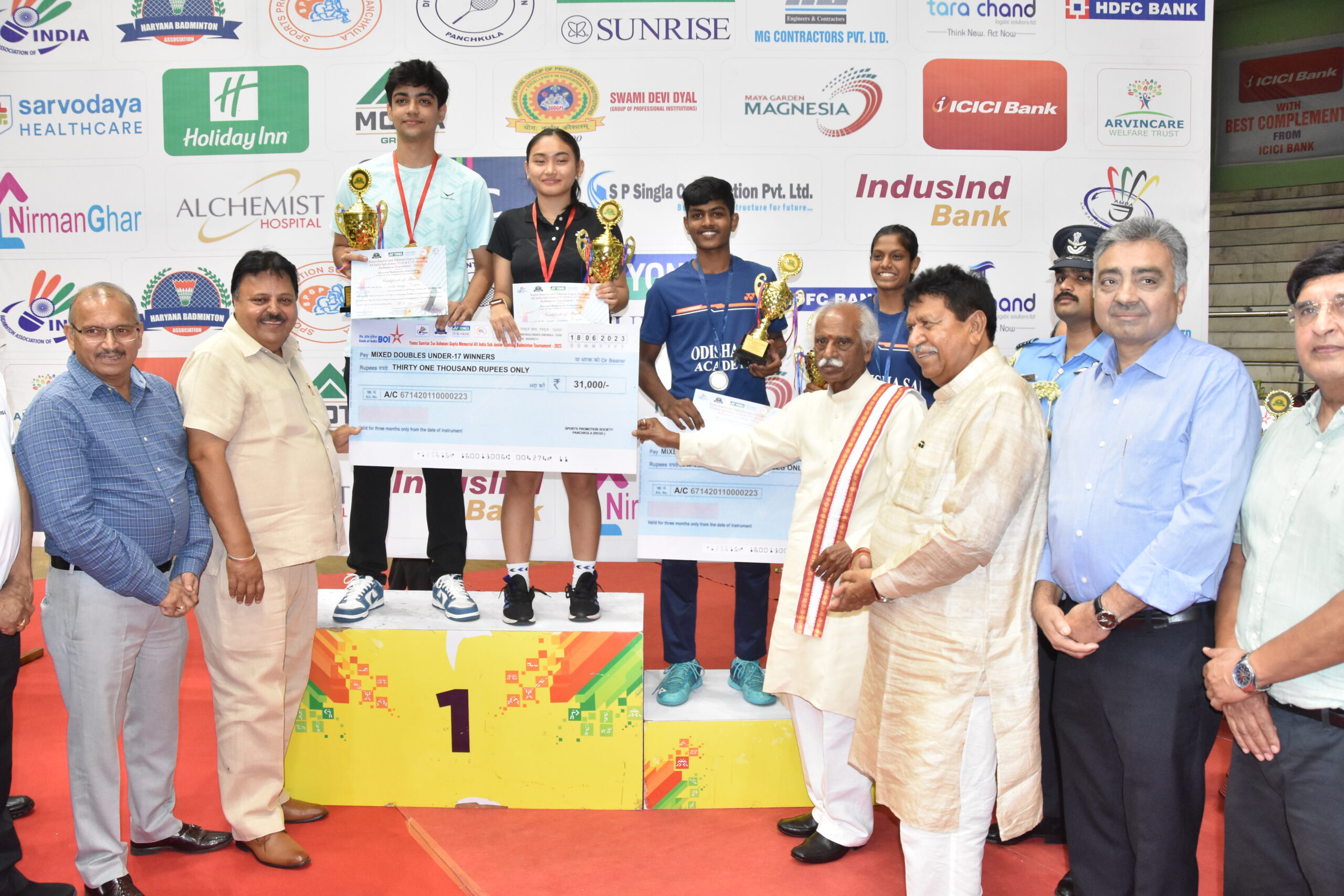 इस अवसर पर भारतीय बैडमिंटन संघ के उपाध्यक्ष श्री अजय कुमार सिंघानिया, नगर निगम महापौर श्री कुलभूषण गोयल, आईटीबीपी के आईजी ईश्वर सिंह दूहन, नगर निगम आयुक्त श्री सचिन गुप्ता, बीजेपी के जिला अध्यक्ष अजय शर्मा, उपाध्यक्ष उमेश सूद, हरेंद्र मलिक, बैडमिंटन एसोसिएशन के महासचिव श्री जतिंदर महाजन, स्पोटर्स प्रमोशन सोसायटी पंचकूला के अध्यक्ष श्री डी.पी. सोनी, महासचिव श्री एन. डी शर्मा, वित्त सचिव श्री वरिंदर मेहता, पार्षद सोनिया सूद, जय कौशिक, सुनित सिंगला, सुरेश वर्मा, सोनू बिडला सहित सोसायटी के पदाधिकारीगण, खिलाड़ी व संबंधित अधिकारी व कर्मचारी उपस्थित थे।