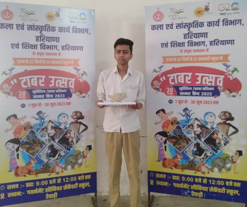 रेवाड़ी। हरियाणा कला एवं सांस्कृतिक कार्य विभाग व शिक्षा विभाग के संयुक्त तत्वाधान में स्कूल स्तर के 5वीं कक्षा से 12वीं कक्षा तक के विद्यार्थियों के लिए 30 जून तक आयोजित किए जा रहे 30 दिवसीय ग्रीष्मकालीन शिविर ‘टाबर उत्सव-2023’ में युवा मूर्ति शिल्पकारों संग मूर्तिकला के हुनर सीख रहे हैं। ‘टाबर उत्सव-2023’ के तहत विद्यार्थियों को आधुनिक मूर्तिशिल्प क्ले मॉडलिंग, रिलिफ एवं 3डी स्कल्पचर आर्ट में हरियाणा संस्कृति पर आधारित प्रशिक्षण दिया जा रहा है। डीसी मोहम्मद इमरान रजा ने बताया कि टाबर उत्सव अतिरिक्त मुख्य सचिव राजेश खुल्लर, महानिदेशक डा. अमित अग्रवाल, शिक्षा विभाग के निदेशक डा. अंशज सिंह के मार्गदर्शन में कला एवं सांस्कृतिक अधिकारी (मूर्तिकला) हृदय प्रकाश कौशल तथा कार्यक्रम अधिकारी (कल्चर) पूनम अहलावत की देखरेख में किया जा रहा है। रेवाड़ी जिला में इस उत्सव का आयोजन राजकीय वरिष्ठ माध्यमिक विद्यालय में किया जा रहा है। इस ग्रीष्मकालीन शिविर ‘टाबर उत्सव’ का उद्देश्य हरियाणा राज्य के होनहार छात्र-छात्राओं को मूर्ति शिल्प कला में अपनी प्रतिभा निखारने व राज्य में लुप्त हो रही मूर्तिकला के संरक्षण को बढ़ावा देना है।